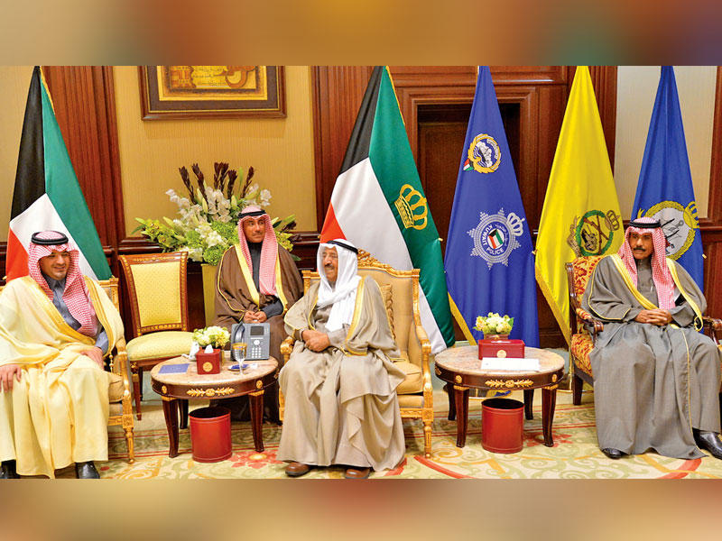 استقبل سمو أمير البلاد الشيخ صباح الأحمد بقصر بيان، صباح أمس، وبحضور سمو ولي العهد الشيخ نواف الأحمد، نائب رئيس مجلس الوزراء ووزير الداخلية الشيخ خالد الجراح، ووزير الداخلية بالمملكة العربية السعودية الأمير عبدالعزيز بن سعود بن نايف آل سعود والوفد المرافق وذلك بمناسبة زيارته للبلاد.حضر المقابلة وزير شؤون الديوان الأميري الشيخ علي الجراح.وفي لقاءاته التي توجها بلقاء صاحب السمو زار وزير الداخلية السعودية، أمس، بحضور الجراح، سمو رئيس مجلس الوزراء الشيخ جابر المبارك، في قصر بيان، أمس، حيث حضر المقابلة رئيس ديوان رئيس مجلس الوزراء الشيخة اعتماد الخالد ووكيل وزارة الداخلية الفريق محمود الدوسري وسفير الكويت لدى السعودية الشيخ ثامر الجابر.بدوره، بحث النائب الأول لرئيس مجلس الوزراء ووزير الدفاع الشيخ ناصر الصباح، أمس، مع وزير الداخلية السعودي والوفد المرافق له أوجه التعاون المشترك.