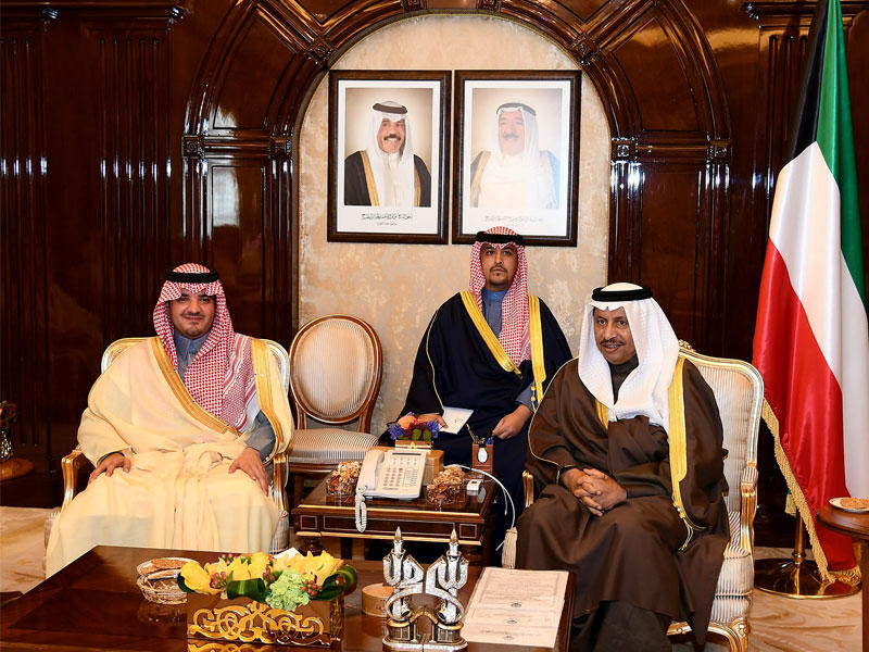 على صعيد متصل، عقد وزير الداخلية اجتماعاً مع أخيه الأمير عبدالعزيز بن سعود بن نايف آل سعود بحضور وكيل وزارة الداخلية والوفد الرسمي الأمني من كلا الجانبين.وفي بداية المباحثات رحب الجراح بضيفه والوفد الأمني المرافق له في بلدهم الثاني الكويت، مؤكداً رسوخ العلاقات الأخوية بين البلدين وحرص القيادة السياسية في الدولتين على تذليل كل الصعاب لدعم هذه الروابط وتوحيد الرؤى حول كافة المستجدات على الساحتين الإقليمية والدولية.وبحث الاجتماع مجمل الأوضاع الأمنية في المنطقة وسبل تفعيل التنسيق والتعاون المشترك بين الأجهزة الأمنية في البلدين وتبادل المعلومات والخبرات الأمنية خاصة لمواجهة الإرهاب والجريمة المنظمة والجرائم المستحدثة والمخدرات، وفي مجال الحدود البرية والبحرية.وشدد الجراح على موقف الكويت الثابت والدائم بشأن دعم العلاقات الثنائية بين دول مجلس التعاون لدول الخليج العربية، معرباً عن تطلعه لأن تحقق المملكة كل التقدم والتطور في ظل قيادة خادم الحرمين الشريفين الملك سلمان بن عبدالعزيز آل سعود وسمو ولي العهد نائب رئيس مجلس الوزراء وزير الدفاع الأمير محمد بن سلمان.وأشاد الجراح بمستوى النجاحات التي تحققت في إطار تعزيز التنسيق والتعاون وتبادل الخبرات بين الأجهزة الأمنية في البلدين وتطابق وجهات النظر تجاه كافة القضايا الإقليمية والدولية، منوهاً بالزيارة التي تأتي تتويجاً للأسس التي أرساها أصحاب السمو قادة دول مجلس التعاون لدول الخليج العربية لدعم وتعزيز الروابط بين الدول الخليجية الشقيقة.توافق كامل