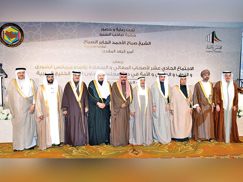 أكد سمو أمير البلاد الشيخ صباح الأحمد أن ما يجمع دول مجلس التعاون الخليجي وشعوبه من وشائج «أسمى من أن يؤثر فيه خلاف نرى أنه عابر مهما طال»، مشيراً إلى أن «الأوضاع المحيطة بنا، والآخذة بكل أسف في التدهور بكل ما يمثله ذلك من تحد لنا جميعاً، فضلاً عما تواجهه مسيرتنا الخليجية المباركة من عقبات وتعثر، تفرض علينا التعاون والتشاور واللقاء على كل المستويات».وقال سموه، في كلمته خلال رعايته وحضوره أمس حفل افتتاح الاجتماع الحادي عشر لرؤساء مجالس الشورى والنواب والأمة بدول مجلس التعاون الخليجي: «إننا لن نستطيع مواجهة هذه التحديات فرادى»، مبيناً أن «العمل الجماعي سبيلنا في هذه المواجهة» للحفاظ على المكاسب والإنجازات التي تحققت لدول مجلس التعاون وشعوبه.