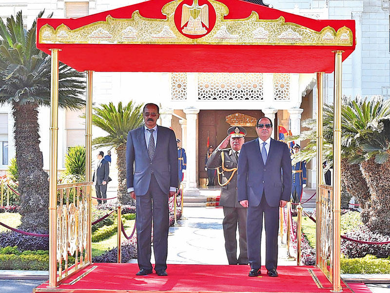 استقبل الرئيس المصري عبدالفتاح السيسي، نظيره الإريتري أسياس أفورقي، في قصر الاتحادية الرئاسي، الثلاثاء، وناقشا العلاقات الثنائية، ومستجدات الأوضاع في دول حوض النيل، ومنطقة القرن الإفريقي، وتطورات القضايا الإقليمية والدولية المشتركة.وعلمت «الجريدة» أن الرئيسين عقدا جلسة ثنائية مغلقة، أعقبها لقاء موسع بين الوفدين، بحضور وزير الخارجية المصري سامح شكري، ورئيس المخابرات العامة الوزير خالد فوزي.وجاءت الزيارة بعد أيام من أنباء تحدثت عن إرسال مصر تعزيزات عسكرية إلى اريتريا نفتها القاهرة، وبعد توقيع الرئيس التركي رجب طيب إردوغان قبل أسبوع اتفاقاً مع نظيره السوداني عمر البشير، مُنح على أثره حق إدارة وتطوير جزيرة «سواكن» الاستراتيجية المطلة على البحر الأحمر.