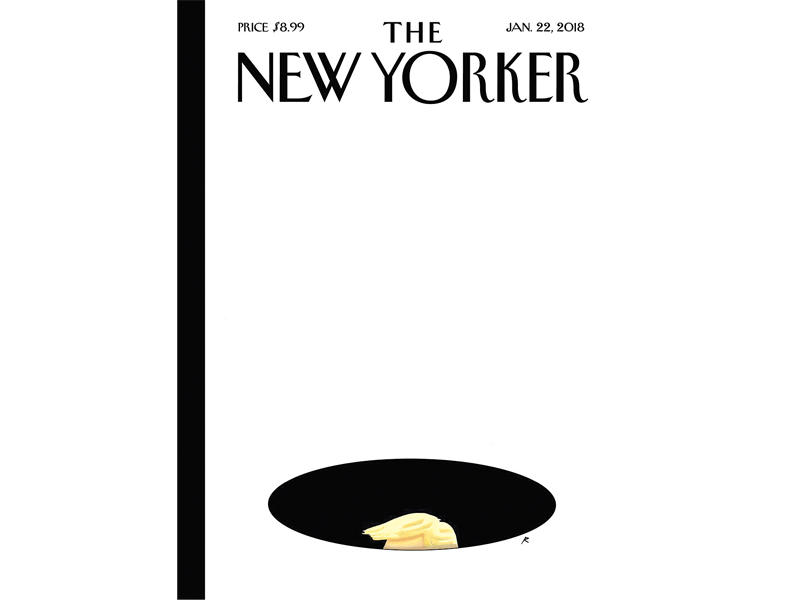خصصت مجلة "نيويوركر" غلاف عددها الجديد للعبارة المهينة التي تلفظ بها الرئيس الأميركي دونالد ترامب، عن المهاجرين الذين وصلوا إلى الولايات المتحدة من بلدان وصفها بـ"حثالة الدول" أو "الأوكار القذرة" .ووضعت المجلة على غلافها رسم حفرة سوداء كبيرة تشبه حفر القاذورات يطل منها رأس رجل بتسريحة شعر تتطابق مع تسريحة ترامب.والرسام الذي ابتدع هذه الصورة وأطلق عليها تسمية "في الحفرة" هو الفنان المعروف أنتوني روسو.ومن المقرر أن يصدر عدد المجلة بهذا الغلاف يوم 22 الجاري.
