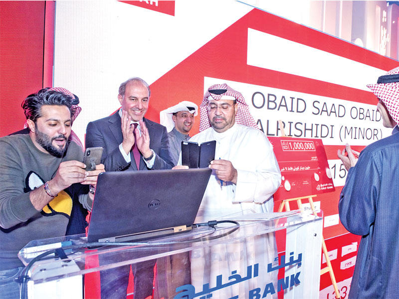 هنأ بنك الخليج عبيد سعد الرشيدي، الفائز في السحب السنوي على جائزة الدانة الكبرى، البالغة قيمتها مليون دينار، وتم الإعلان عن فوزه على الهواء مباشرة عبر إذاعة راديو نبض الكويت 88.8 إف إم، خلال الفعالية الخاصة التي أقيمت بمجمع الأفنيوز. وكما هو متبع في كل السحوبات الأخرى لـ«الخليج»، أقيم سحب الدانة تحت إشراف ممثل وزارة التجارة والصناعة في الكويت عبدالعزيز أشكناني. واستضاف الفعالية الإعلامي ونجم قنوات التواصل الاجتماعي عمر العثمان. وبالنيابة عن «الخليج»، قام مساعد مدير إدارة الاتصال المؤسسي، مجرن المجرن، بإشعال حماس الجماهير التي حضرت الفعالية، بصحبة أحمد المطري، مدرب في إدارة الموارد البشرية لدى البنك.