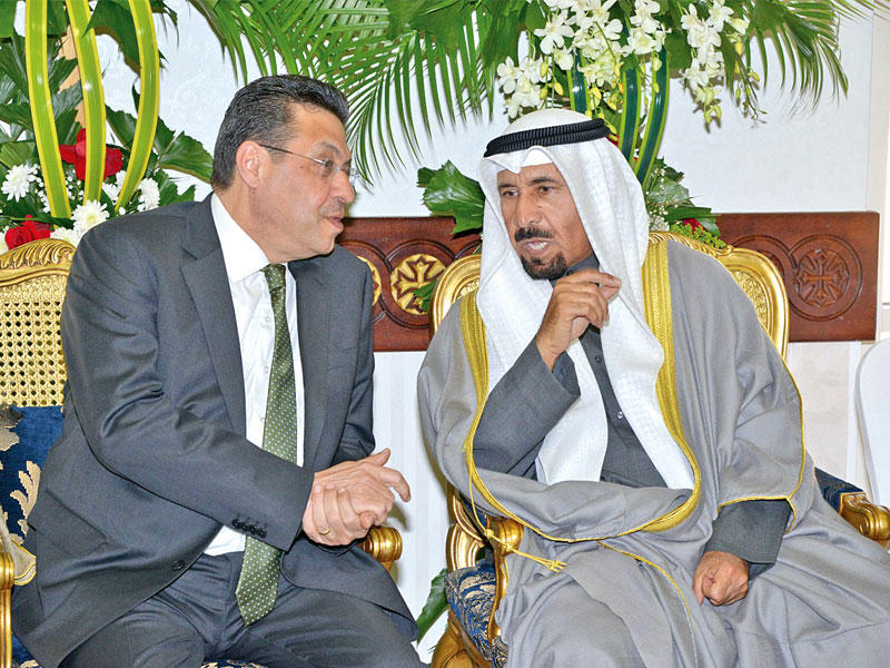 الشيخ علي الجابر والسفير المصري طارق القوني