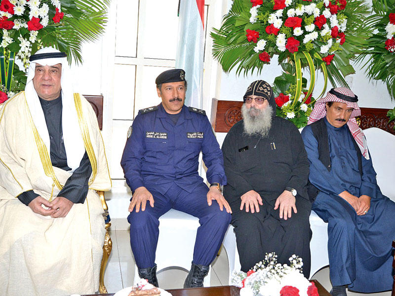 الإعلامي أحمد شمس الدين والقمص بيجول ومدير أمن حولي اللواء عابدين العابدين وعبدالفتاح معرفي