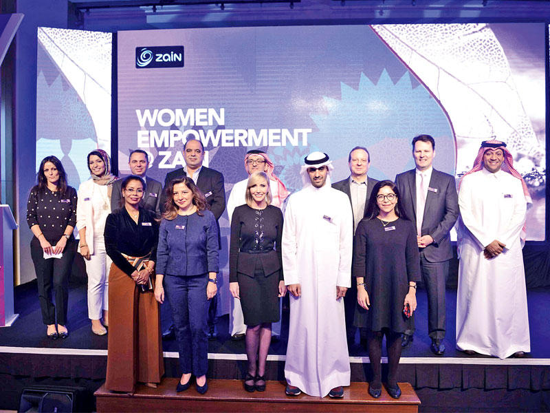 الخرافي يتوسط عدداً من موظفات «زين» خلال ملتقى تمكين المرأة