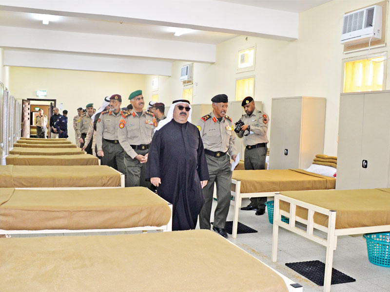 ولمناسبة زيارة الشيخ ناصر الصباح، قدمت دفعة المجندين 46 عرضاً لمهارات المسير والتشكيلات العسكرية، ثم ألقى رئيس هيئة الخدمة الوطنية العسكرية اللواء الركن إبراهيم العميري إيجازاً أوضح من خلاله كل البرامج التي تم إعدادها للمجندين من علوم نظرية وتدريبات عملية تسهم في عملية إعدادهم وتدريبهم.وقام الشيخ ناصر الصباح بجولة تفقدية على مرافق التدريب واطلع على ما تم توفيره من خدمات للمجندين، كذلك على سير العمل لتنفيذ جميع المهام والواجبات المناطة بالقائمين على عملية التدريب.يذكر أن موعد خروج دفعة المجندين 46 بإجازتهم الأولى يكون اليوم بعد انتهاء فترة تدريبهم الأساسية وانتقالهم من الحياة المدنية إلى الحياة العسكرية وما فيها من ضبط وربط وتدريب وجدية للتعايش والتعامل مع مختلف الظروف.