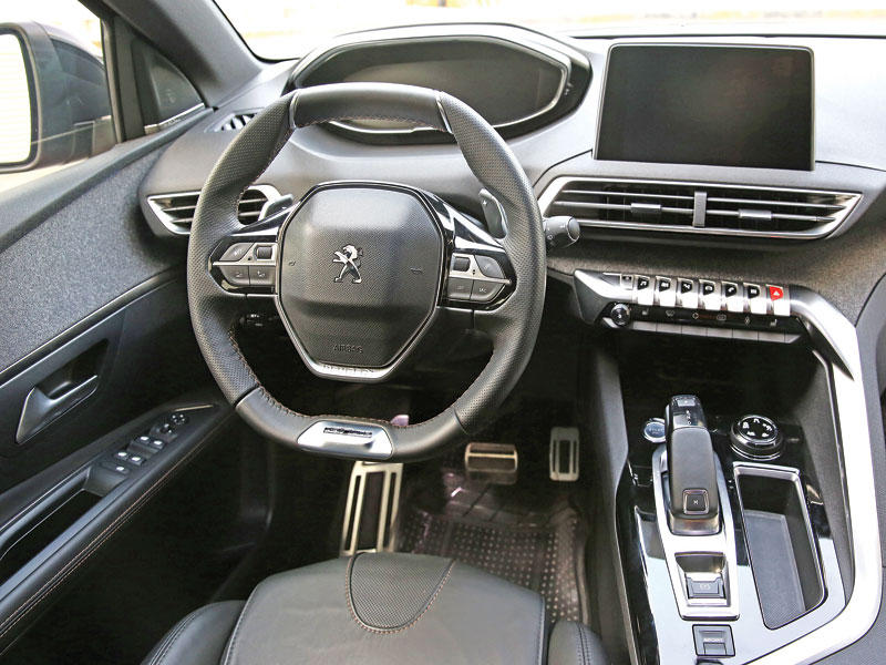 "فضائية"، هو أفضل وصف ممكن لداخلية بيجو الجديدة بعد تجهيزها بتفاصيل غير تقليدية، والدخول إليها هو ولوج لعالم آخر، مفاجئ، أصلي ويفيض بالجودة. تجذب لوحة عدادات مذهلة، من المستقبل تقريباً، النظر إليها على الفور. هذه المجموعة المتماسكة والمتميزة بتقنياتها العالية هي أحدث جيل من مقصورة القيادة الذكية من بيجو PEUGEOT i-Cockpit®، وهي مفهوم جديد أعاد كتابة مواصفات مقصورة قيادة السيارة. هنا كل شيء يبدو في خدمة متعة وتركيز السائق ضمن أجواء عالية التجهيز بتقنيات متطورة وبشكل ملحوظة.وأصبحت عجلة القيادة مدمجة أكثر، كما أعيد تصميمها مع شعاعين مسطّحين من أجل إحكام الإمساك بها أكثر، ولتقدم للسائق أقصى مستوى للرؤية والمساحة للأرجل. يوفر الاهتمام الدقيق، الذي أُعطي لاختيار المواد مع العناية بكل التفاصيل - من جلد عجل من المستوى 2، تطعيم بالكروم وزينة سوداء لامعة – مستوى عالياً من الجودة والجاذبية الملموسين.تشبه الشاشة، التي تعمل باللمس قياس 8 بوصات جهاز كمبيوتر لوحياً تم تركيبه في وسط لوحة العدادات، وهي مجهزة بتكنولوجيا للمس شديدة الحساسية (capacitive technology) لتفاعل وأداء عملي أعلى. كذلك، تترافق مع ستة مفاتيح بيانو أنيقة "أزرار تبديل" (toggle switches) – مما يسمح بوصول دائم مباشر إلى وظائف التحكم الرئيسية: الراديو، التحكم بتكييف الهواء، النظام الملاحي، مواصفات السيارة، الهاتف وتطبيقات الهاتف المتحرك.الدفع والاسترخاء