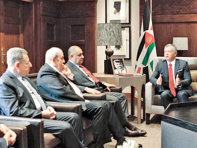 في إطار التحركات العربية لمواجهة تداعيات الاعتراف الأميركي بالقدس عاصمة لإسرائيل، التقى العاهل الأردني الملك عبدالله الثاني، أمس، وفداً من مجلس العلاقات العربية والدولية برئاسة رئيس المجلس محمد جاسم الصقر، وعضوية النائب الأول لرئيس المجلس نائب الرئيس العراقي د. إياد علاوي، وأعضاء مجلس الأمناء رئيس وزراء الأردن السابق طاهر المصري، ورئيس وزراء لبنان السابق فؤاد السنيورة، والأمين العام السابق للجامعة العربية عمرو موسى، والمدير العام للمجلس السفير الكويتي محمد الصلال. واستعرض الملك عبدالله، خلال اللقاء، جهود بلاده لحماية القدس ودعم الموقف الفلسطيني، من خلال توحيد الجهود العربية وتفعيل الاتصالات والتنسيق مع الدول الإسلامية بشكل خاص، والمجتمع الدولي عبر المنظمات الدولية والهيئات الروحية الإسلامية والمسيحية، وكذلك الدول الصديقة التي عارضت أي مساس بالوضع القانوني لمدينة القدس، وأبدت احترامها للقرارات الدولية الخاصة بالقضية الفلسطينية.