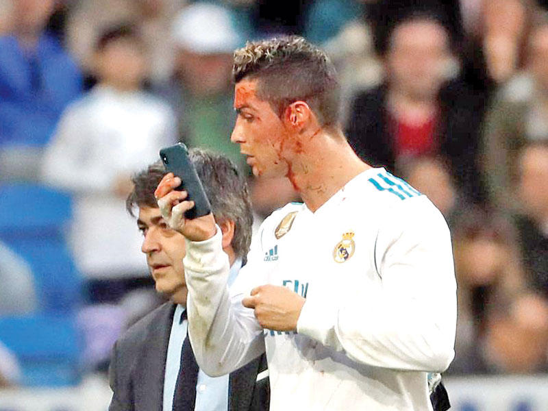 رونالدو يستعين بالهاتف الخلوي الخاص بالطبيب المعالج لنادي ريال مدريد من أجل معاينة الإصابة التي لحقت به من قبل فابيان شار مدافع ديبورتيفو لاكورونيا، في المباراة التي انتهت بفوز الريال بنتيجة 7-1 وسجل خلالها الهداف البرتغالي هدفين.