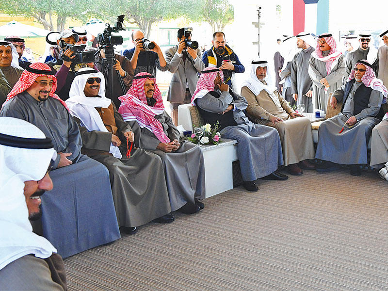 الأمير وولي العهد وجابر العبدالله وجابر المبارك في مزرعة عزايز أمس