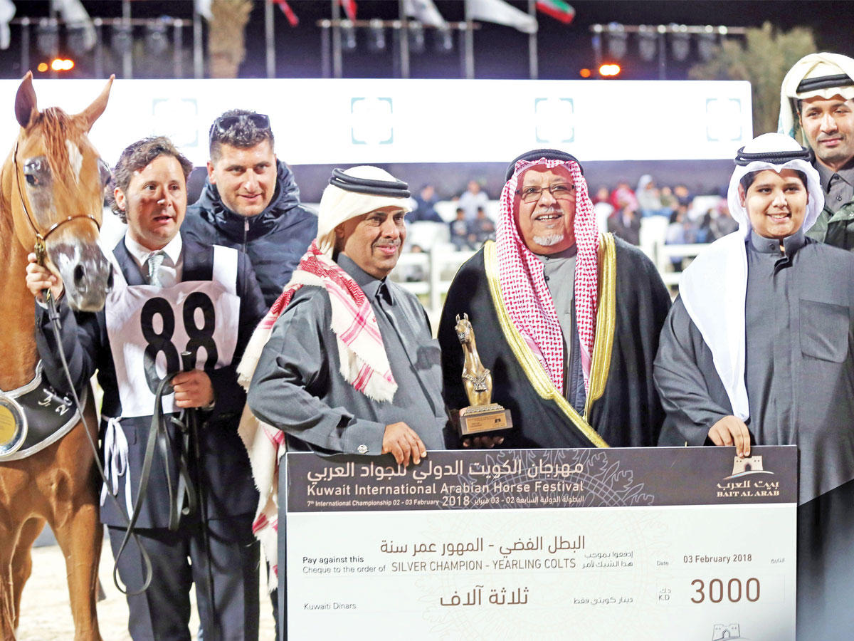 اختتمت مساء أمس الأول السبت منافسات البطولة الدولية السابعة لجمال الخيل العربية أولى بطولات مهرجان الكويت الدولي للجواد العربي الذي يقام برعاية أميرية سامية، حيث شارك في البطولة 289 جوادا من الكويت ودول عربية وأجنبية.حضر ختام البطولة وزير شؤون الديوان الأميري الشيخ علي الجراح، ورئيس مجلس أمناء بيت العرب علاء الرومي وعدد من أعضاء المجلس وضيوف المهرجان وجمهور غفير من مربي وملّاك الخيل ومن محبي هذه الرياضة العربية الأصيلة.وأسفرت نتائج البطولة عن تتويج المهرة "غليبة الشقب" لمربط الشقب القطري بلقب مسابقة أجمل فلوة لعمر "سنة فما أقل"، في حين أحرز المهر "أليار الواوان" العائد لمربط الواوان من الكويت لقب منافسات أجمل فلو المخصصة لنفس العمر.