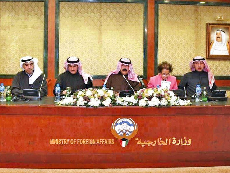 اجتمع نائب وزير الخارجية خالد الجارالله، أمس، مع عدد من السفراء وممثلي السفارات العربية والأجنبية المعتمدة لدى البلاد.وقال بيان صحافي لوزارة الخارجية إن الجارالله أوضح للسفراء أن الاجتماع الوزاري للتحالف الدولي لمحاربة ما يسمى تنظيم الدولة الاسلامية (داعش)، المقرر عقده في الكويت 13 الجاري، سيكون الأول من نوعه، لا سيما أنه ينعقد بعد مرحلة تحرير العراق من براثن تنظيم "داعش" الإرهابي، منوها بمشاركة نحو 70 دولة و4 منظمات وهيئات دولية.وأشار إلى أن هذا الاجتماع يأتي في إطار استمرار الجهود الدولية والتنسيق المشترك بين الدول الأعضاء في مجال مكافحة الإرهاب، ومتابعة الاستراتيجية التي رسمها التحالف لمحاربة هذا التنظيم، ويعتبر رسالة واضحة وقوية لمواجهة الإرهاب بكل أشكاله وصوره.وأوضح أن هذا المؤتمر يتزامن انعقاده مع انعقاد مؤتمر الكويت الدولي لإعادة إعمار العراق، المقرر عقده في الكويت خلال الفترة من 12 إلى 14 الجاري برعاية كريمة من سمو أمير البلاد الشيخ صباح الأحمد.
