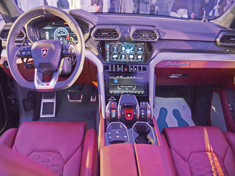 يبدو النمط الإيطالي الفاخر والحرفية الرائعة جليا في سيارة Urus، حيث تمتلئ مقصورتها المريحة بمواد عالية الجودة، بما في ذلك أرقى الجلود، الكانتارا، الألمنيوم، ألياف الكربون والخشب. يمكن بتخصيص Urus أربعة أو خمسة مقاعد، التي توفر وضع الجلوس المنخفض للركاب، أن يخلق شعورا مريحا بالاتساع. وتضمن Urus الرفاهية لكل من شاغليها في المقاعد المصممة خصيصا لسيارة الدفع الرباعي الخارقة. وتتميز المقاعد الرياضية القياسية الأمامية بكونها كهربائية بالكامل، فيمكن تدفئتها، كما أنها قابلة للتعديل في ۱۲ اتجاها مختلفا. وكخيار إضافي، توجد مقاعد أمامية رياضية أكثر فخامة قابلة للتعديل في ۱٨ اتجاها مختلفا. أما بالنسبة للمقعد الخلفي العادي، فيأتي مع ظهر قابل للطي والنقل وإضافات. يطغى طراز لامبورغيني السداسي في جميع أنحاء المقصورة الداخلية للسيارة، وتتضمن عجلة القيادة متعددة الوظائف - والتي تحتوي على ثلاثة محاور – مثبط اهتزازات، لتعزيز الراحة في جميع ظروف القيادة. كما تم وضع مفاتيح متعددة الوظائف بشكل حدسي على عجلة القيادة، للسيطرة على نظام المعلومات والترفيه الخاص بلامبورغيني (LIS)، بما في ذلك إعدادات ضبط السيارة، ووسائل الإعلام والهاتف والملاحة. ويتم استخدام شاشة TFT رقمية بالكامل لعرض المعلومات الرئيسة الخاصة بالسيارة عن طريق التقنية ثلاثية الأبعاد، وهي قابلة للتخصيص من قبل السائق. ويعكس نظام المعلومات والترفيه الخاص بسيارة Lamborghini Urus إمكانية استخدامه الفاخرة واليومية، ويأتي مع ميزات اتصال متقدمة. وبشكل عام، تحتوي السيارة على شاشة عرض LIS تعمل باللمس عبر شاشتين، وتعد الشاشة العليا الواجهة الرئيسة للترفيه، وهي تتحكم في وظائف، مثل: وسائل الإعلام والملاحة والهاتف والمعلومات الخاصة بحالة السيارة. كما توفر الشاشة السفلى لوحة مفاتيح وشاشة متوافقة مع الكتابة اليدوية لإدخال المعلومات والتحكم في الوظائف المختلفة، مثل التحكم في المناخ وتدفئة المقاعد. يمكن اختيار وتحديد نظام Bang & Olufsen الصوتي المتطور، الذي يوفر صوتا ثلاثي الأبعاد مع 21 من مكبرات الصوت النشطة.أنظمة حديثة