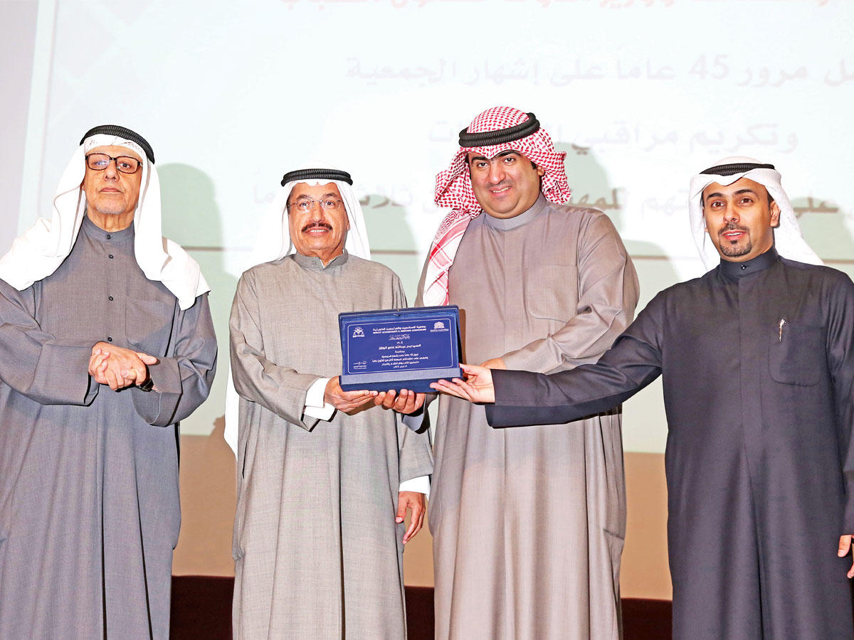 ولفت إلى أن «الجمعية تعتبر صرحا عريقا له شأنه وأهميته في الكويت، إذ جاهدت فيه نخبة من رؤساء وأعضاء لسنوات مضت وحتى عامنا هذا، وتكاتفت الأيادي فيه حول هدف واحد هو الالتزام الأخلاقي، ودعمهم مهنة المحاسبة والمراجعة من أجل الارتقاء بأدائها بما يعود بالنفع على النشاط التجاري والاقتصادي».