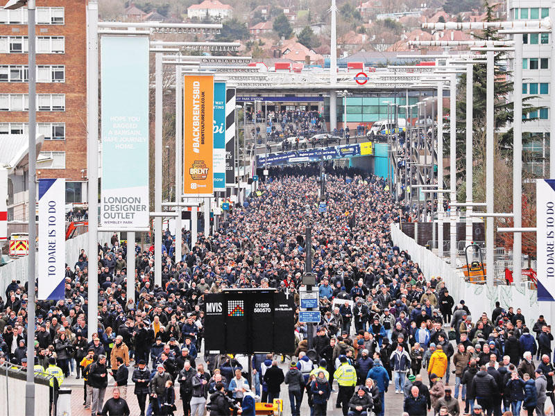 صورة الأسبوع : ملعب ويمبلي الشهير اكتظ بالجماهير خلال مباراة توتنهام صاحب الضيافة وارسنال في «دربي» شمال لندن، حيث انتهت المواجهة بفوز توتنهام بنتيجة 1-صفر ، وكانت هذه المباراة أول مواجهة بين قطبي شمال العاصمة على ملعب «ويمبلي» ، والذي يستخدمه توتنهام هذا الموسم كأرض له في انتظار انتهاء الأعمال في ملعبه.