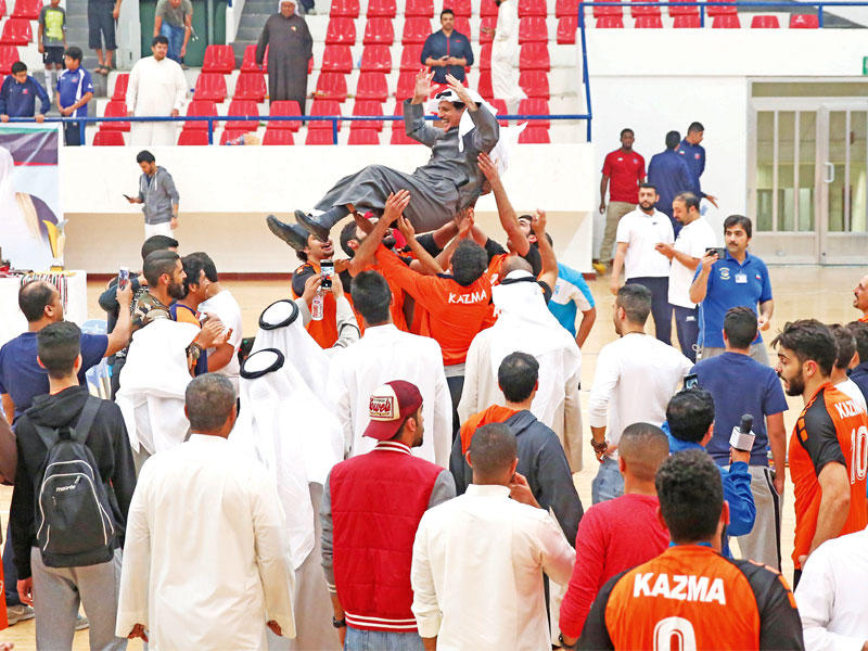 توج فريق كاظمة بلقب الدوري الممتاز للكرة الطائرة للمرة الـ 15 في تاريخه، بعد فوزه على نظيره الكويت بنتيجة 3-2 في المباراة النهائية أمس الأول على صالة الأخير.