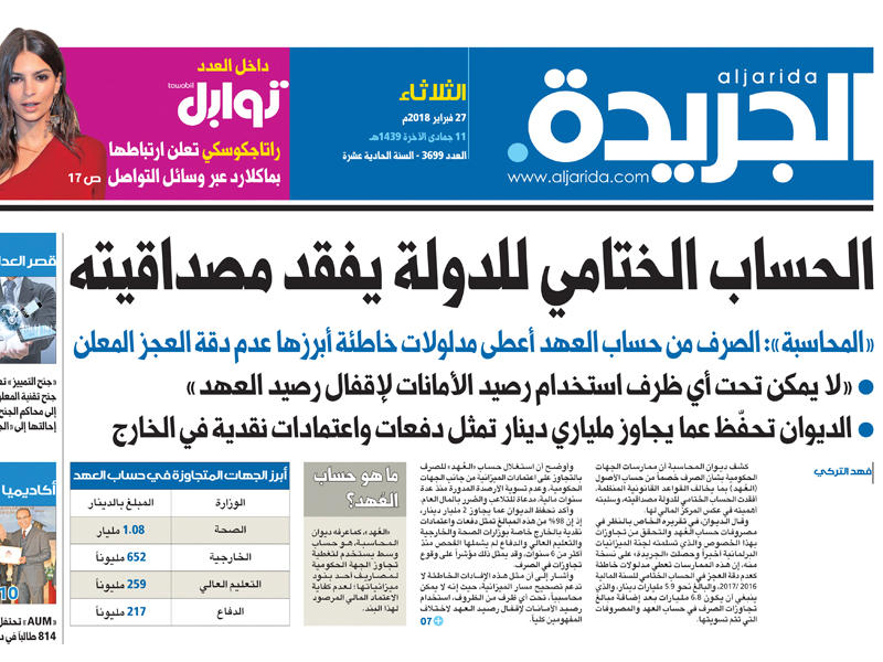 تفاعلاً مع ما أثارته "الجريدة"، أمس الأول، بشأن تقرير ديوان المحاسبة الخاص بصرف الجهات الحكومية خصماً من حساب الأصول (العُهد)، مما أفقد الحساب الختامي للدولة مصداقيته، قرر مجلس الوزراء في اجتماعه الأسبوعي أمس، تشكيل فريق عمل لمعالجة هذا الملف، وتقديم أفضل الحلول العملية لحسمه.وصرح نائب رئيس مجلس الوزراء وزير الدولـة لشؤون المجلس أنس الصالح، عقب الاجتماع، بأن الفريق، الذي شكلته اللجنة الوزارية للشؤون الاقتصادية، والمكون من الأمانة العامة لمجلس الوزراء، ووزارة المالية وجهاز المراقبين الماليين، إلى جانب إدارة الفتوى والتشريع، سيعمل لتقديم كل صور المساندة لديوان المحاسبة لتجاوز الصعوبات التي أشار إليها في تقريره، وتذليلها لتمكينه من استكمال مهمته.