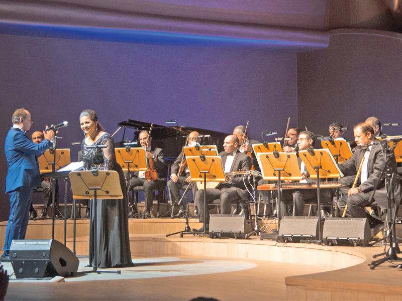 أحيت الفنانة المصرية إيمان عبدالغني حفلا غنائيا استثنائيا بمركز الشيخ جابر الأحمد الثقافي، حيث يتجدد الموعد في الخميس الأول من كل شهر، مع باقة مختارة من أغنيات كوكب الشرق أم كلثوم، بأصوات نخبة من فنانات دار الأوبرا من جمهورية مصر العربية، بقيادة المايسترو د. عماد عاشور، وفرقة عربية كلاسيكية مكوَّنة من 20 عازفاً.وضربت عبدالغني صوليست فرقة الموسيقى العربية بدار الأوبرا المصرية، صوليست فرقة أم كلثوم للموسيقى العربية، موعداً مع الإبداع مساء أمس الأول، عندما قدمت 5 من أفضل أعمال كوكب الشرق بقاعة الشيخ جابر العلي الصباح الموسيقية، وأمام حضور جماهيري كبير زحف يمني النفس بواحدة من سهرات أم كلثوم، عندما كان الجمهور يقصد مسرح سينما قصر النيل بوسط القاهرة، بينما شوارع العاصمة المصرية شبه خالية، والجميع يترقب إطلالة الست، وما أشبه اليوم بالبارحة، حيث في تمام الثامنة لف الظلام قاعة الموسيقى إلا من إضاءة خافتة على المسرح، وصعد أعضاء الفرقة الموسيقية بقيادة المايسترو عاشور، ومن ثم لحقت بهم الفنانة المصرية إيمان لتبدأ حفلها الذي امتد ساعتين، تخلله فاصل قصير، منتقية بذكاء 5 أغنيات من أرشيف كوكب الشرق، فمزجت بين أعمال من محطات مختلفة من مسيرة أم كلثوم.