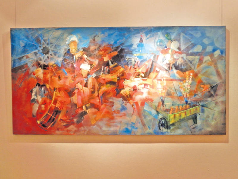 تجسد كل لوحة في المعرض حكاية. هل تعدّ الحكاية الشاغل الأساسي في أعمالك؟كل لوحة هي معايشة وموضوع. في المعرض ثيمة الحراك والحياة الشعبية والتركيز على مولد السيدة زينب، لأنه يمثِّل صميم العادات والتقاليد الشعبية المصرية سواء من خلال الراقصين في الفنون الشعبية أو التنورة والأداء التعبيري الخاص بها.هل أسهم العمل الأكاديمي في تقويض حريتك، حيث الخضوع لقوانين وأسس معينة أم تعمل بعفوية الفنان العادي؟سؤال صعب، العمل الأكاديمي يمثِّل مشكلة. نتحدّث طوال الوقت عن القواعد والأسس، فيما أن الالتزام بها لفترات يقيِّد الفنان، ولكن عند حدود معينة يصبح على وعي بأن عليه أن يعرف القواعد، كي يحطمها أو يخرج منها بوعي.كيف تتجلى رؤيتك للمشهد التشكيلي الراهن؟يجعلني المشهد التشكيلي على مستوى الأفراد أؤكد أن لدينا فنانين يستطيعون المنافسة على مستوى عالمي، لكن المشكلات التي نخضع لها كبعض العادات وأمور كثيرة تحكمها أطر روتينية، تعوق وجود نهضة تتناسب مع حجم الفنانين الموجودين. كذلك نعاني قلة الإمكانات وغياب التظاهرات الفنية الكافية التي تستوعب الفنانين. أما التبادل مع العالم الخارجي فموجود، إنما في حدود ضيقة. من ثم، الفرصة محدودة للحضور على الساحة العالمية بالقدر المقنع.الأصالة والحداثة