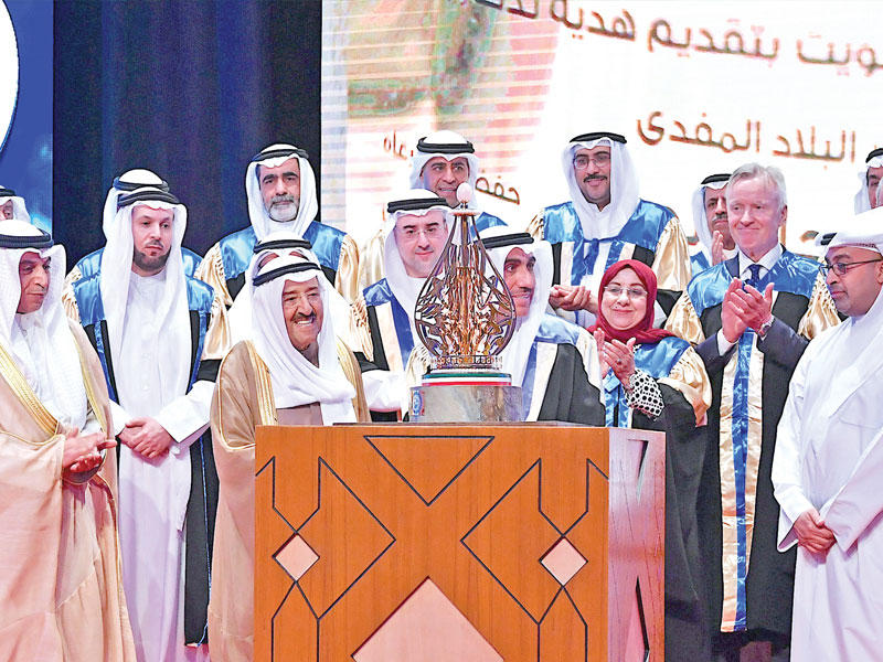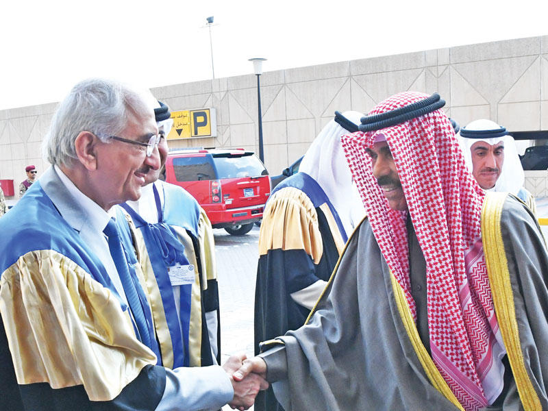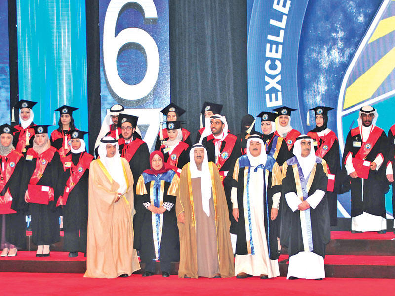 كرّم سمو أمير البلاد الشيخ صباح الأحمد أمس كوكبة من خريجي الجامعة المتفوقين للعام الجامعي 2016 /2017، على مسرح المغفور له الشيخ عبدالله الجابر بمنطقة الشويخ.