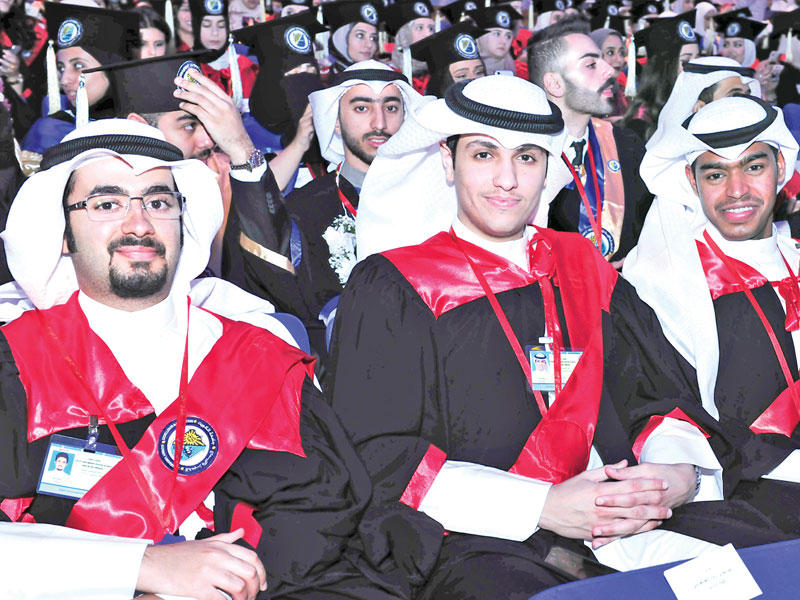يحرص سمو أمير البلاد الشيخ صباح الأحمد سنوياً على رعاية وحضور حفل تخريج أبنائه من الفائقين من طلبة جامعة الكويت، لاهتمام سموه البالغ بالعلم والتعليم ودورهما الكبير في بناء (كويت جديدة) وفق رؤيته السامية.وتفضل سموه أمس برعايته وحضوره حفل توزيع شهادات الإجازة الجامعية والدراسات العليا لخريجي الجامعة المتفوقين للعام الجامعي 2016/2017 الذين بلغ عددهم 178 خريجاً وخريجة، بينهم خمسة حاصلون على درجة الدكتوراه و27 من حملة الماجستير و146 من حملة البكالوريوس.وكعادتها سنوياً تحتفل جامعة الكويت بتكريم خريجيها من المتفوقين وذلك منذ تأسيسها بموجب القانون رقم 29 لسنة 1966 بشأن تنظيم التعليم العالي والقوانين المحمولة له، وذلك بعد خمس سنوات فقط من حصول دولة الكويت على استقلالها وتحقيق سيادتها الكاملة.وضمت الجامعة عند تأسيسها كلية العلوم والآداب والتربية وكلية البنات الجامعية، وفي أبريل عام 1967 صدر مرسوم أميري بإنشاء كليتين هما الحقوق والشريعة وكلية التجارة والاقتصاد والعلوم السياسية.وبحسب إحصائية رسمية بلغ عدد خريجي جامعة الكويت 117440 طالباً وطالبة منذ العام الدراسي الأول للجامعة 1969/1970 حتى نهاية العام الدراسي 2015/2016.وفي العام الدراسي الأول للجامعة شهد تخريج 264 طالباً وطالبة منهم 214 في كلية الآداب و50 في كلية الحقوق بينما شهد العام الدراسي 2015/2016 تخريج 6490 طالباً وطالبة في مختلف الكليات.وسجل خريجو كلية الآداب أكبر عدد من الخريجين في تاريخ الجامعة بـ 21279 طالباً وطالبة، وجاء في المرتبة الثانية خريجو كلية التربية بـ 19896 خريجاً وخريجة حتى نهاية العام الدراسي 2015/2016.وحل في المرتبة الثالثة خريجو كلية الهندسة والبترول بـ 12374 خريجاً وخريجة، تلاهم خريجو كلية التجارة والاقتصاد بـ 11092 خريجاً وخريجة، بينما جاء في المرتبة الخامسة خريجو كلية العلوم بـ 10611 خريجاً وخريجة عام 2015/2016.وجاء خريجو كلية الحقوق في المرتبة السادسة بـ 8630 خريجاً وخريجة، تلاهم خريجو كلية العلوم الإدارية بـ 8508 خريجين، وفي المرتبة الثامنة جاء خريجو كلية العلوم الاجتماعية بـ 7835 خريجاً وخريجة، وفي المرتبة التاسعة خريجو كلية الشريعة بـ 7769 خريجاً وخريجة، وفي العاشرة خريجو كلية العلوم الطبية المساعدة بـ 2662 خريجاً وخريجة.وبلغ عدد الخريجين الأوائل للعام الجامعي 2015/2016 نحو 163 فائقاً وفائقة منهم 30 من خريجي الدراسات العليا.وشهدت جامعة الكويت توسعاً كبيراً في عدد كلياتها العلمية، فبعد صدور المرسوم الأميري رقم 307 لسنة 2013 بإنشاء كلية الصحة العامة بمركز العلوم الطبية بجامعة الكويت، أصبحت تضم 17 كلية علمية وإنسانية.