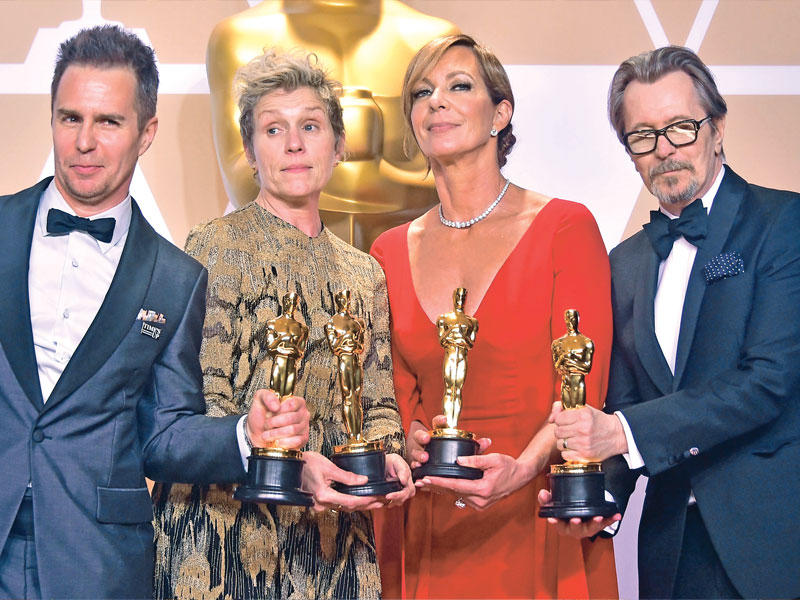 خلال حفل خيّم عليه التذمر من فضائح الاعتداءات الجنسية واكتسى حلة رياضية، فازت فرانسيس ماكدورماند وغاري أولدمان بجائزتي «الأوسكار» لأفضل ممثلين، وحصد فيلم «ذا شيب أوف ووتر» 4 جوائز رئيسة، في حين حاز فيلم «دنكيرك» ثلاث جوائز.وجاءت تسمية الفائزين في فعالية أقيمت بهوليوود أمس، في وقت لم تغِب المأساة السورية عن النسخة التسعين من حفل أكاديمية العلوم والفنون السينمائية الأميركية، إذ حضرت الطفلة بانا العابد المشاركة في الفيلم الوثائقي «آخر الرجال في حلب»، والتي اشتهرت بنقل يوميات الحصار في حلب للعالم عبر حسابها في «تويتر».