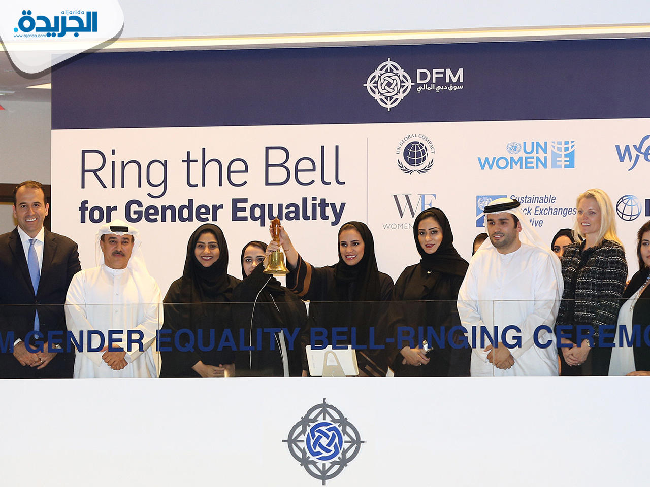 وقد قرعت موزة المري، عضو مجلس إدارة شركة سوق دبي المالي وشمسة صالح المدير التنفيذي لمؤسسة دبي للمرأة جرس إغلاق جلسة التداول بحضور كل من ومريم فكري، الرئيس التنفيذي للعمليات ورئيس قطاع التقاص والتسوية والإيداع، وفهيمة البستكي، نائب رئيستنفيذي، ورئيس قطاع تطوير الأعمال إلى جانب عدد آخر من القيادات النسائية في سوق دبي المالي. ومن خلال تلك الفعاليات فإن المشاركين مدعوون لإظهار التزامهم بتعزيز التوازن بين الجنسين من خلال التوقيع على مبادئ تمكين المرأة، وترسيخ التنوع في الإدارات العليا ومجالس الإدارات وخلق بيئة مواتية بشكل أكبر للتوازن بين الجنسين.وفي إطار الاحتفال بيوم المرأة العالمي أطلق سوق دبي المالي مجلساً نسائياً يتولى قيادة جهود تمكين المرأة. ويعد المجلس النسائي أحدث مبادرات السوق الهادفة إلى تعزيز حضور المرأة في مجال أسواق المال والعمل على زيادة تمثيل العنصر النسائي في مجلس إدارات الشركات المدرجة. يتكون المجلس من 6 عضوات يُمثلن مختلف قطاعات السوق، ويتولى إعداد خطط العمل السنوية والتنسيق الداخلي والخارجي وتنظيم والمشاركة في الفعاليات النسائية. وقد شاركت عضوات المجلس أيضاً في احتفالية قرع الجرس.وأعرب محمود البرعي، ممثل شبكة ميثاق الأمم المتحدة في الإمارات عن تقديره لمبادرة سوق دبي المالي بالمشاركة في احتفاليات قرع الجرس للمساوة بين الجنسين، الأمر الذي يعكس إدراكه التام لأهمية هذا الأمر في دفع النمو الاقتصادي العالمي. وأضاف: ” إننا فخورون بما أبداهالمشاركون من حرص على تطبيق مبادئ تمكين المرأة وتحقيق الهدف الخامس من الأهداف العالمية المتمثل في التوازن بين الجنسين.”.وتجدر الإشارة إلى أن سوق دبي المالي يعتبر من بين المؤسسات الوطنية الأكثر تمكيناً للمرأة، حيث لعب العنصر النسائي دوراً مهماً في مسيرة السوق الحافلة بالنجاحات على مدى الثمانية عشر عاماً الماضية، علماً أن نسبة السيدات من إجمالي عدد العاملين في السوق تصل حالياً إلى 60%. هناك العديد من القطاعات والإدارات الحيوية في سوق دبي المالي التي تكاد تدار بالكامل وبنجاح وفعالية كبيرتين من قبل السيدات.