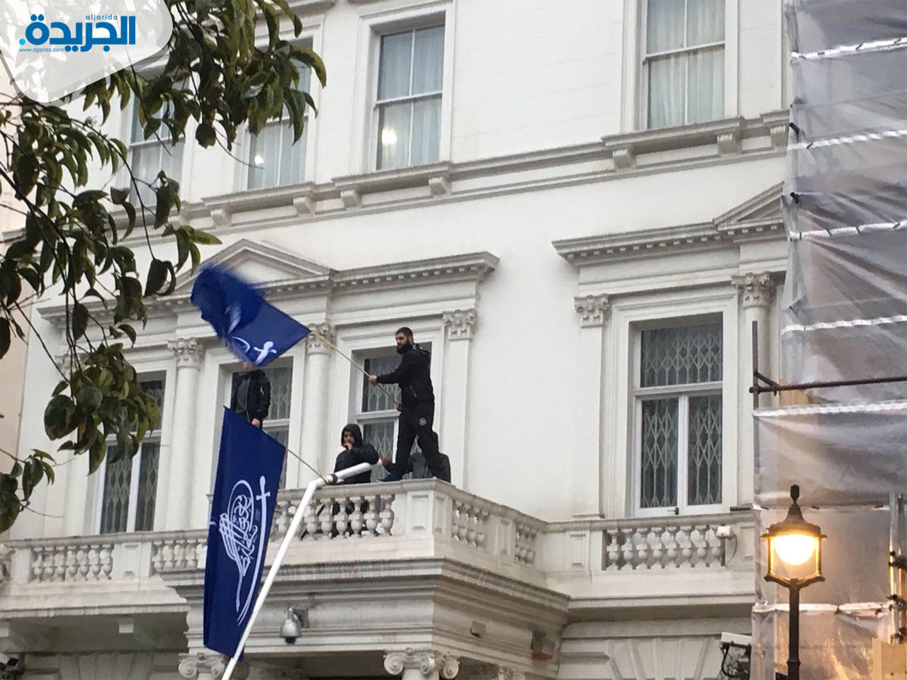 أنصار الشيرازي ينزلون العلم الإيراني من سفارة طهران في لندن
