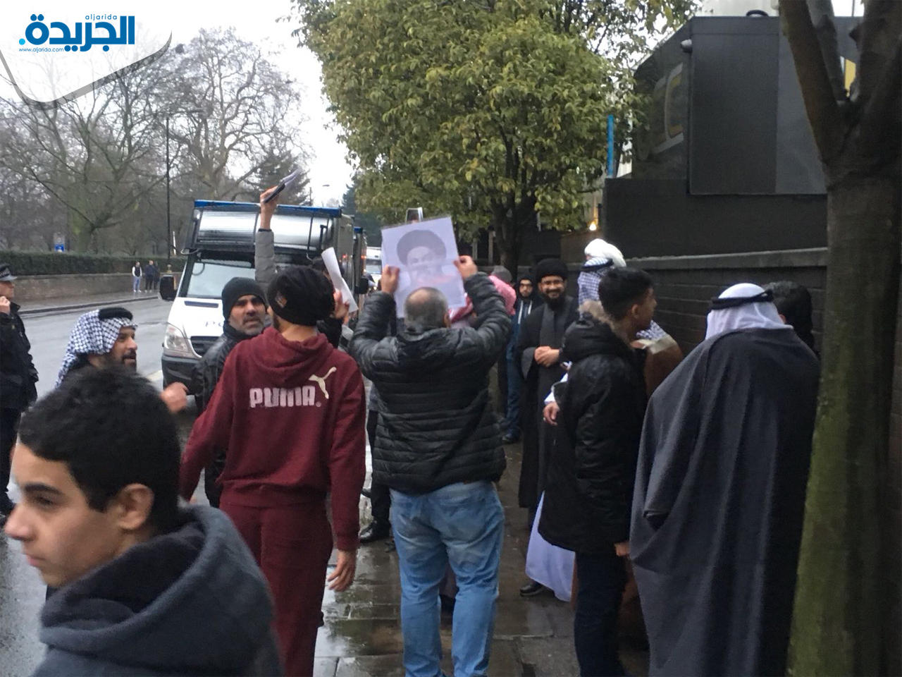 ونقلوا إلى مفوضية شرطة وسط لندن، بحسب المصدر ذاته.وعبر نائب وزير الخارجية الإيراني عباس عراقجي «عن احتجاج ايران الشديد إلى السفير البريطاني في طهران، وطلب من الشرطة حماية مطلقة للدبلوماسيين الايرانيين في لندن»، بحسب ما أفاد بهرام قاسمو المتحدث باسم الخارجية الإيرانية وكالة إرنا الرسمية. وتحدثت ايران عن إساءة إلى العلم الإيراني من جانب أنصار «عقيدة متطرفة» يقيمون في المملكة المتحدة.وفي وقت لاحق قال متحدث باسم وزارة الخارجية البريطانية في بيان «إنّ لسلامة وأمن الدبلوماسيين والبعثات الدبلوماسية في بريطانيا أهمية قصوى بالنسبة إلينا».يذكر، أن متظاهرين قاموا أمس باقتحام شرفة مبنى السفار الإيرانية في لندن احتجاجاً على اعتقال السلطات الإيرانية للمرجع الديني الشيعي آية الله حسين الشيرازي قبل أيام في طهران.وقالت مصادر لـ «الجريدة» أن أنصار للشيرازي، هاجموا السفارة وتسلقوا المبنى وأنزلوا العلم الإيراني عنها ورفعوا رايات خاصة بـ «هيئة خدام المهدي».وأضافت المصادر أن المهاجمين حطموا صور مؤسس الجمهورية الإسلامية الخميني والمرشد الأعلى علي خامنئي والرئيس حسن روحاني.وقال السفير الإيراني لدى لندن بعيدي نجاد أن المهاجمين كانوا يحملون سيوفاً وهراوات وكسروا بوابات السفارة.يُذكر أن «هيئة خدام المهدي» أسسها ياسر حبيب في الكويت، ثم انتقلت إلى لندن بعد هروبه من البلاد إثر صدور حكم بالسجن ضده وتمتلك عدداً من الفروع منها في لبنان.
