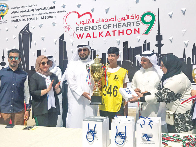 من جانب آخر، أقيمت، أمس، فعاليات النسخة التاسعة من سباق المشي "واكاثون - أصدقاء القلوب" برعاية وحضور وزير الصحة؛ تشجيعا ًلأفراد المجتمع على ممارسة الرياضة، بغية الحفاظ على صحتهم، واتقاء للإصابة بالأمراض لاسيما القلب. وشهد السباق، الذي نظمه المستشفى الصدري على ساحل منطقة الشويخ، مشاركة العديد من الجهات المعنية بالصحة العامة، من بينها بنك الدم وجمعية القلب الكويتية وجامعة الكويت، فضلا عن عدد كبير من مختلف الفئات العمرية بحضور قدامى لاعبي الكويت والشيخة أوراد الصباح.وافتتح وزير الصحة المعرض المصاحب للسباق.وقال وزير الصحة، إن "واكاثون أصدقاء القلوب التاسع" يُعد خطوة فريدة تُشكر عليها إدارة مستشفى الأمراض الصدرية واللجنة المنظمة، حيث يسعون إلى رفع مستوى التوعية الصحية بمخاطر أمراض القلب والشرايين، والترويج لأسلوب حياة صحي.وبيَّن أن "الواكاثون" يدخل ضمن خطة "الصحة" لدعم مثل هذا النوع من الأنشطة والفعاليات، إيمانا منها بأهمية نشر الرسالة التوعوية الهادفة إلى رفع وعي المجتمع لتعزيز الصحة.وأضاف أن "الواكاثون" يهدف إلى تعزيز العلاقة بين المرضى والموظفين، وتوعيتهم بالأنشطة الصحية، بالتعاون مع الجهات الحكومية والقطاع الخاص، وهو ما يعكس العلاقة الفعالة والمثمرة بين القطاعين.وأشاد بمشاركة العديد من الرياضيين في الفعالية، وبجهود مديرة مستشفى الأمراض الصدرية د. ريم العسعوسي، واللجنة المنظمة، والإعداد الجيد لها.
