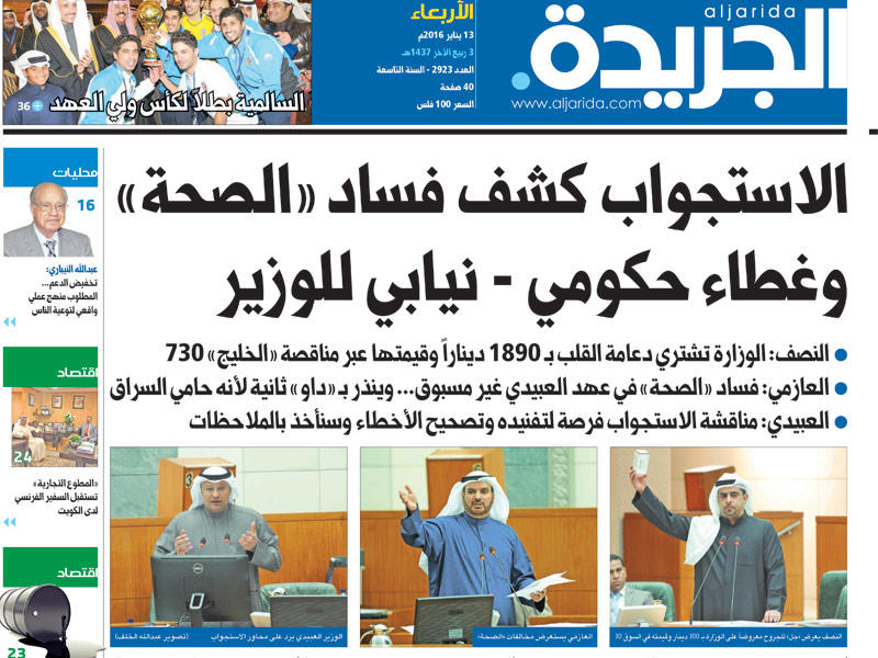 القضية تبنتها الجريدة. بعدما أثارها النائب النصف في استجوابه للوزير العبيدي بمجلس 2013