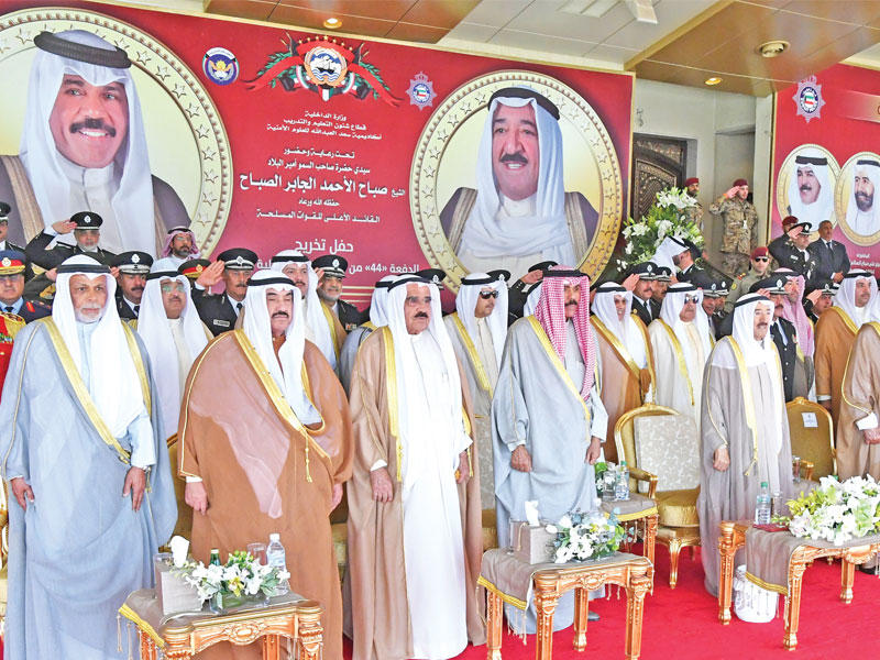 برعاية وحضور سمو أمير البلاد وسمو ولي العهد احتفلت وزارة الداخلية ممثلة بأكاديمية سعد العبدالله للعلوم الأمنية بتخريج دفعة الطلبة الضباط الرابعة والأربعين في ميدان الأكاديمية.