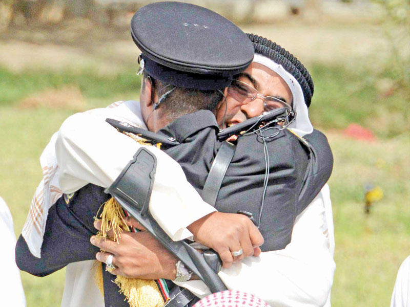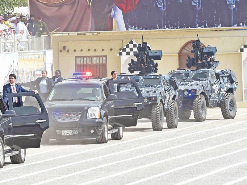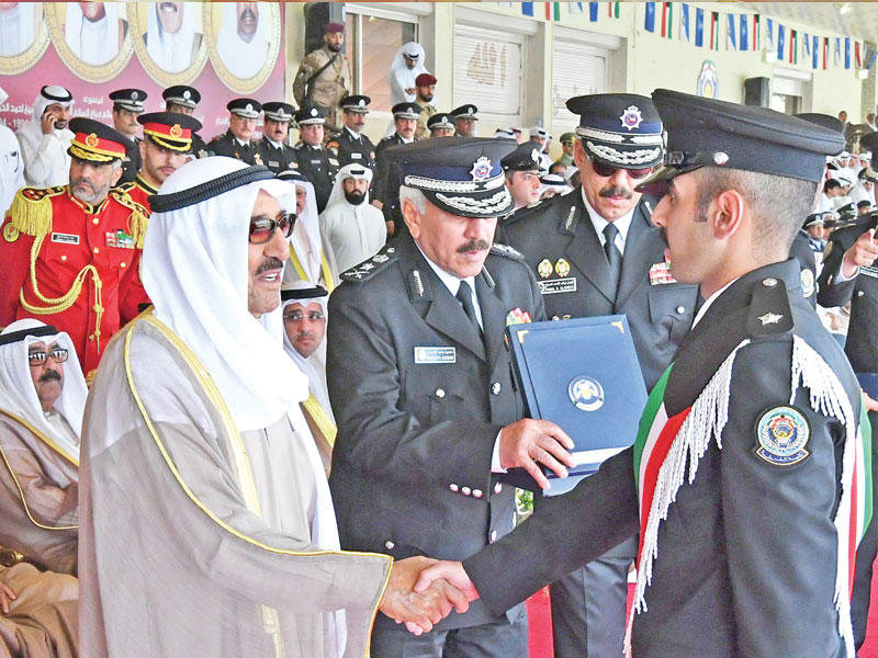 احتفلت أكاديمية سعدالعبدالله للعلوم الأمنية، صباح أمس، برعاية وحضور سمو أمير البلاد الشيخ صباح الأحمد القائد الأعلى للقوات المسلحة، وحضور سمو ولي العهد الشيخ نواف الأحمد ورئيس مجلس الوزراء سمو الشيخ جابر المبارك، ورئيس المجلس الأعلى للقضاء ورئيس محكمة التمييز ورئيس المحكمة الدستورية المستشار يوسف المطاوعة، ورئيس مجلس الأمة بالإنابة د. عودة الرويعي بحفل تخريج الدفعة الرابعة والأربعين من الطلبة الضباط، وذلك في ميدان أكاديمية سعد العبدالله للعلوم الأمنية.واستقبل سمو الأمير من نائب رئيس مجلس الوزراء وزير الداخلية الشيخ خالد الجراح، ومستشار وزير الداخلية الفريق أول متقاعد سليمان الفهد، ووكيل وزارة الداخلية الفريق محمود الدوسري، ووكيل وزارة الداخلية المساعد لشؤون التعليم والتدريب اللواء الشيخ فيصل النواف، والوكلاء المساعدين بوزارة الداخلية.وقال اللواء الشيخ فيصل النواف في كلمة ألقاها بهذه المناسبة، إنه «بكل معاني الفخر والاعتزاز يشرفنا أن نرحب بحضرة سمو أمير البلاد وسمو ولي العهد بأكاديمية سعد العبدالله للعلوم الأمنية، التي تشهد اليوم تخريج دفعة جديدة من خيرة أبناء هذا الوطن الغالي فداء ووفاء بالعهد الذي يجمعنا تحت ظل سموكم حفظكم الله ورعاكم».وأضاف اللواء النواف، أن «أبناءك من الطلبة الخريجين يتطلعون إلى آفاق واسعة للمساهمة في تنمية بلادنا وكلهم فخر واعتزاز بالقيم الوطنية التي عملتم على تثبيتها كقائد لنهضتنا وصانع لمستقبلنا مستنيرين بتوجيهات سموكم نبراساً وبحب الكويت دليلاً».
