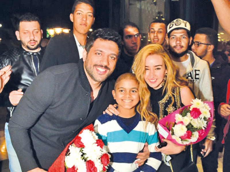 واستجاب حكيم لطلب والدة الطفلة سارة من ذوي الاحتياجات الخاصة للقائه وحرص على التقاط الصور التذكارية معها وتحدث إليها أكثر من ساعتين، وكانت والدتها تطرقت عبر أكثر من صفحة على “فيسبوك” إلى عشق ابنتها له لدرجة وضعها صوره في فرح شقيقتها.حكيم استضاف سارة في منزله ونشر صور اللقاء عبر صفحته على «إنستغرام»، فيما وجهت والدتها الشكر إلى الفنان المصري على موقفه الداعم لابنتها ومساهمته في رفع روحها المعنوية، بينما وعدها بالتواصل الدائم معها والاتصال بها من أجل الاطمئنان عليها.وحرص حسن الرداد على استقبال طفل مريض بالسرطان خلال العرض الخاص لفيلمه الأخير “عقدة الخواجة”، وأهداه الصغير باقة من الورد وشاهد الفيلم إلى جواره، ذلك بالتنسيق مع إدارة المستشفى التي حققت حلمه بلقاء نجمه المفضل قبل خضوعه لجراحة خطيرة.كارمن سليمان