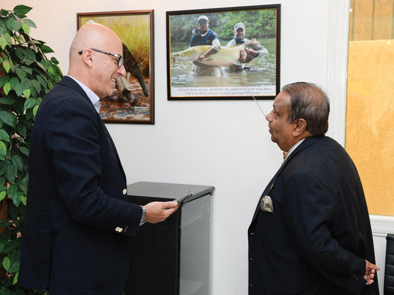حرصت السيدة سارة البلطيمي، مديرة مكتب السفير، على استقبال محرر «الجريدة» والمصور بلفتة طيبة، إذ وضعت على شاشة كهربائية عبارة ترحيب على مدخل السفارة باللغة الإنكليزية، كما أطلعتنا على تسجيل مصور لعمليات استكشاف النفط في غايانا، وقدمت لنا شرحاً وافياً عن بعض المنتجات المشهورة في غايانا والمعروضة بالسفارة. السفير في سطور