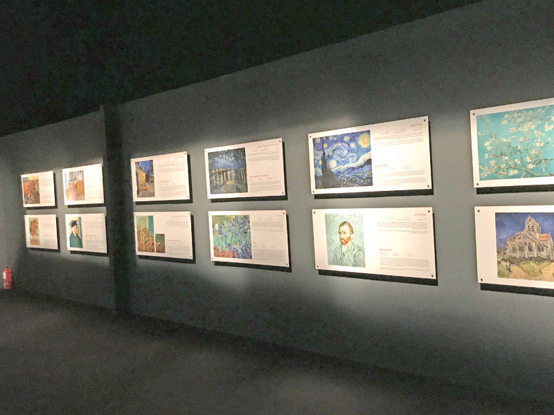 يعتبر معرض «فان غوخ... اللوحات الحية» المقام في حي دبي للتصميم، نافذة على حياة مبدع قدم الكثير خلال رحلته القصيرة مع الفن، حيث يتيح المعرض لمحبي الفنون تجربة فريدة من نوعها، لمشاهدة لوحات الرسام الهولندي فنسنت فان غوخ من خلال تقنيات حديثة تغير المفهوم التقليدي للمعرض الفني الذي يعتمد على التأمل الصامت للأعمال الفنية التي تعتلي الجدران، إذ تحوّله إلى تجربة تفاعلية تجمع الصورة والصوت.ويتضمن المعرض مجموعة نسخ مميزة من أعمال الرسام الهولندي، أبرزها نسخة عن غرفة الفنان التي صورها في العمل الفني «غرفة نوم في آرل»، والتي أنجز فيها معظم أعماله، فضلا عن نموذج من لوحة «مزهرية بها اثنا عشر زهرة عباد الشمس»، التي شكلت علامة فارقة في مشواره الإبداعي.ويتضمن المعرض قسما خاصا للتعريف بحياة الفنان الهولندي عبر الوسائط المتعددة، ضمن تجربة حسية متكاملة تحاكي تسلسل مراحل تطور حياة فان غوخ، وتتناول أسلوبه الفني، لتستعرض أمام الزائرين مشهداً يسرد أحداثاً متسلسلة من حياته الفنية التي لم تتجاوز السنوات العشر، والتي حددتها بمرحلة «هولندا، باريس، آرل، سان ريمي، أوفير-سر-واز». ويتسق هذا السرد مع موسيقى كلاسيكية مختارة، تمنح العرض حضوراً مؤثراً.ويعتمد هذا المعرض على إدخال الزائر في تجربة متكاملة، تنطلق مع موسيقى سيمفونية قوية تسيطر على حواسه، يصاحبها تحول جدران وأرضية المكان إلى شاشات عرض لمجموعة من أعمال الفنان المعروف.ويتضمن «فان غوخ... اللوحات الحية» نحو 3 آلاف عمل يتناول عالم فان غوخ، ما بين لوحات معدة للتعريف بتجربته وحياته الفنية من خلال صور اللوحات والسيرة المكتوبة، وبين محاكاة هذه الأعمال بتجربة بصرية حسية متطورة، وباستخدام 40 جهاز إسقاط صور عالية الدقة.المعرض الفني