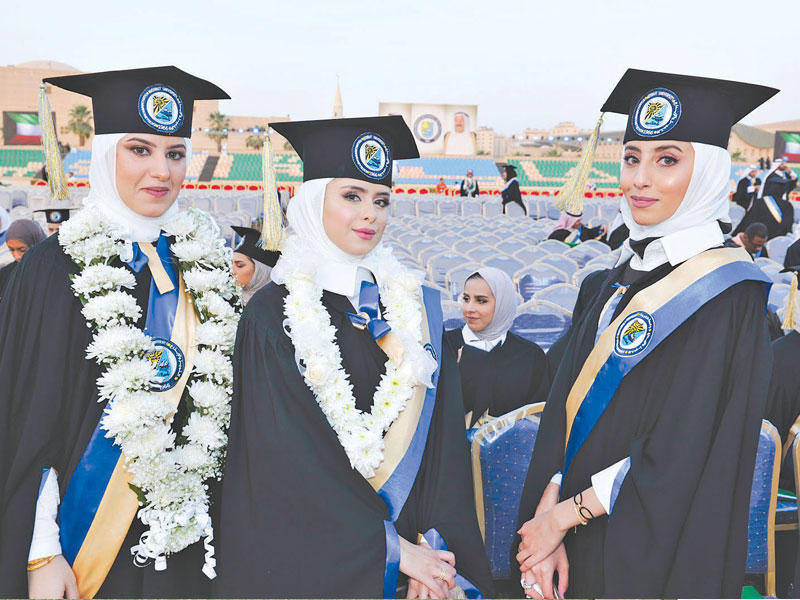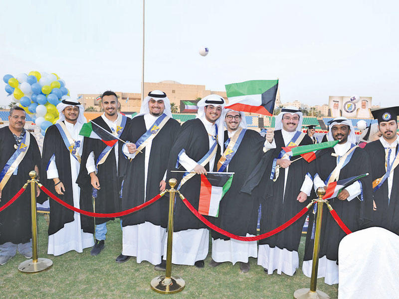 أكد سمو ولي العهد الشيخ نواف الأحمد، أن خريجي جامعة الكويت نخبة من الشباب المتسلح بالعلم والمعرفة، الحصن المنيع للوطن، وكنزه الذي لا ينضب عبر الزمن، داعيا سموه الخريجين إلى تحمّل أمانة المسؤولية، والحرص على التفاني في سبيل خدمة كويتنا الغالية وأهلها الأوفياء، مساهمين في تقدمها وتنميتها.جاء ذلك خلال رعاية سموه وحضوره حفل التخرج السنوي الموحد لخريجي جامعة الكويت للدفعة السابعة والأربعين للعام الأكاديمي 2016/ 2017، الذي أقيم مساء أمس، في الاستاد الرياضي بالحرم الجامعي (الشويخ)، بحضور رئيس مجلس الأمة بالإنابة، د. عودة الرويعي، وكبار الشيوخ والمسؤولين في الدولة ووزير التربية وزير التعليم العالي، الرئيس الأعلى للجامعة د. حامد العازمي، ومدير جامعة الكويت د. حسين الأنصاري، والأمين العام للجامعة د. مثنى الرفاعي، ونواب المدير، والأمين العام المساعد للشؤون المالية عبدالله بورسلي، وجمع غفير من أهالي الخريجين.وجاء في نص كلمة سمو ولي العهد: «إنه حقا ليوم ميمون في تاريخ كويتنا الغالية، يوم نحتفي جميعا بنجاحكم وتخرجكم في الجامعة، بعد مسيرة طويلة من الاجتهاد والتحصيل والمثابرة على مدى سنوات عديدة، خلال مرحلتي الطفولة والشباب من أعماركم الزاهرة.
