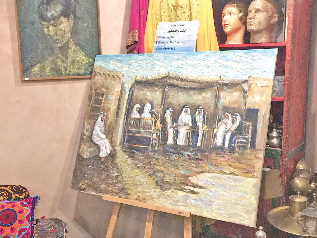 تعرض الفنانة التشكيلية ابتسام العصفور عدداً من أعمالها الفنية في «بيت أحمد»، منتقية لوحات تراثية مستوحاة من البيئة الكويتية القديمة.