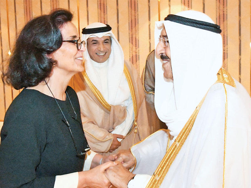 الشيخة أمثال الأحمد تستقبل الأمير لدى وصوله إلى الحفل