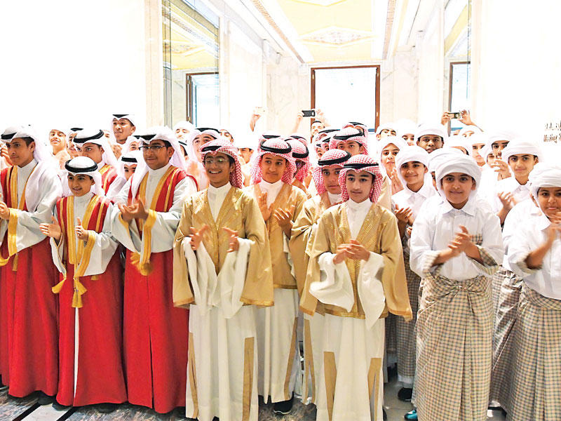 سموه وولي العهد يرحبان بالأطفال المشاركين في الحفل