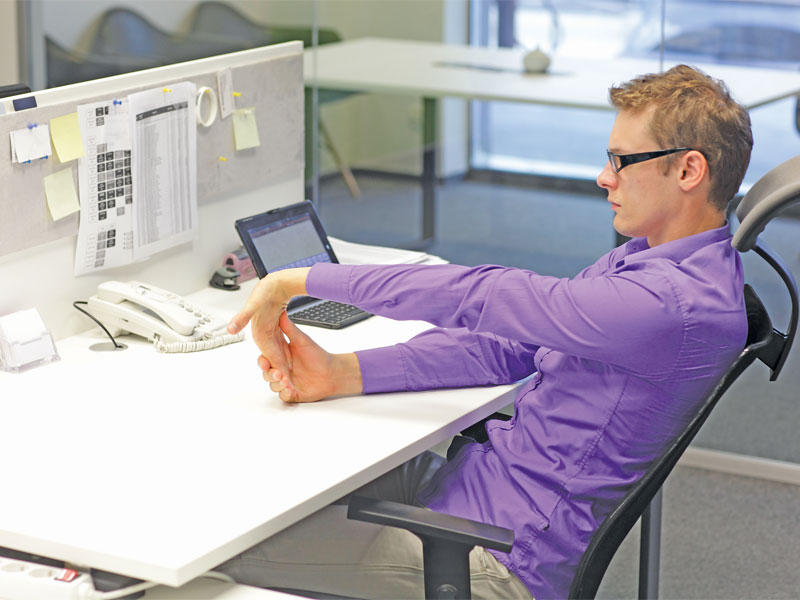 حين تكون في مكان العمل، لا تنسَ أن تهتم بجسمك. إليك عدداً من التمارين الأساسية التي ستحافظ على عضلاتك قوية وتبعد عنها أي وهن.