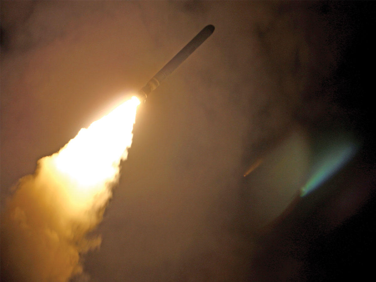 صاروخ توماهوك أطلقه الطراد «USS مونتيري» في طريقه إلى دمشق فجر أمس (أ ف ب)