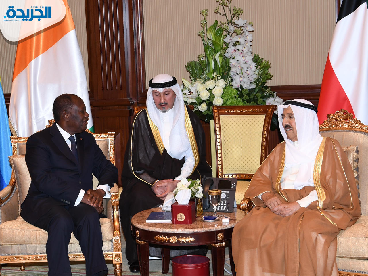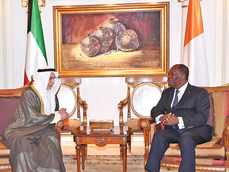 استقبل سمو أمير البلاد الشيخ صباح الأحمد، في قصر بيان ظهر أمس، رئيس جمهورية كوت دي فوار الحسن واتارا والوفد الرسمي المرافق له، وذلك بمناسبة زيارته الرسمية للبلاد.وعقدت المباحثات الرسمية بين الجانبين، إذ ترأس الجانب الكويتي سمو أمير البلاد وسمو رئيس مجلس الوزراء الشيخ جابر المبارك وكبار المسؤولين بالدولة، وعن جمهورية كوت دي فوار الرئيس واتارا وكبار المسؤولين في حكومة بلاده.وصرح وزير شؤون الديوان الأميري الشيخ علي الجراح بأن المباحثات تناولت العلاقات الثنائية بين البلدين والشعبين الصديقين وسبل تعزيزها وتنميتها في مختلف المجالات وتوسيع أطر التعاون بين الكويت وجمهورية كوت دي فوار بما يخدم مصالحهما المشتركة وأهم القضايا ذات الاهتمام المشترك.