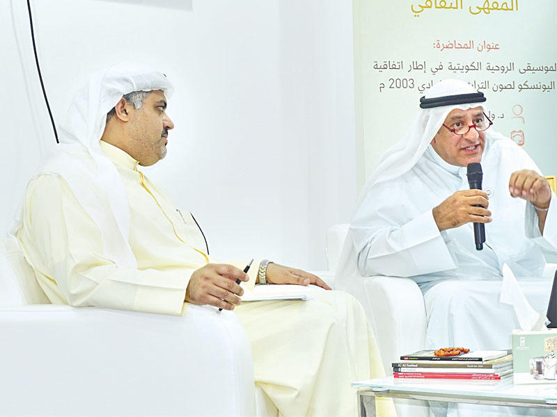 قدم مستشار الأمين العام في المجلس الوطني للثقافة والفنون والآداب في الكويت، ممثل الكويت الحالي لمنصب نائب رئيس الجمعية العامة لصون التراث الثقافي غير المادي، بمنظمة اليونسكو، د. وليد السيف، محاضرة في المقهى الثقافي عن الموسيقى الروحانية الكويتية في إطار اتفاقية "اليونسكو" لصون التراث الثقافي غير المادي 2003، حيث قال إن تاريخ الموسيقى الروحية يعود إلى الحضارات القديمة كالحضارة السومرية والفرعونية والصينية والهندية، عندما عرف الإنسان في تلك الحضارات العبادة الإلهية، مستخدما موسيقى لخلق جو روحاني يقربه من معبوده. وأضاف: تثبت العديد من المدونات القديمة والشواهد الأثرية للحضارات القديمة استعمال الموسيقى في المعابد لاستحضار الآلهة بحضور الكهنة، حيث استمرت «الموسيقى الروحية» طوال العصور السحيقة، كما استمرت خلال عصور الأديان السماوية التي كان آخرها الإسلام.وأوضح أن هناك خصائص للموسيقى الروحانية من حيث طابعها، إما ديني كالعشق الإلهي والمدائح النبوية، أو ثقافي كالفنون المتعلقة بالعادات والتقاليد كطقوس الزواج والوفاة والزار، كما أنها كانت تمارس بعاطفة عفوية، خصوصاً في موضوعها الديني، وبساطة الإيقاعات والألحان مع تكرارها والتحكم بسرعتها الإيقاعية، فضلا عن أنها تعتمد على صوت المُنْشِد وأصوات الكورال المساندة للمُنْشِد، ولا تدخل الآلات الموسيقية إلا في نطاق محدود جدا كالدفوف، وهناك دول إسلامية تعتبر استثناء لهذه الخاصية، منها على سبيل المثال تركيا والمغرب.