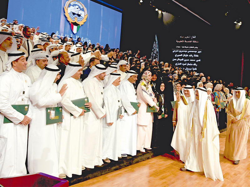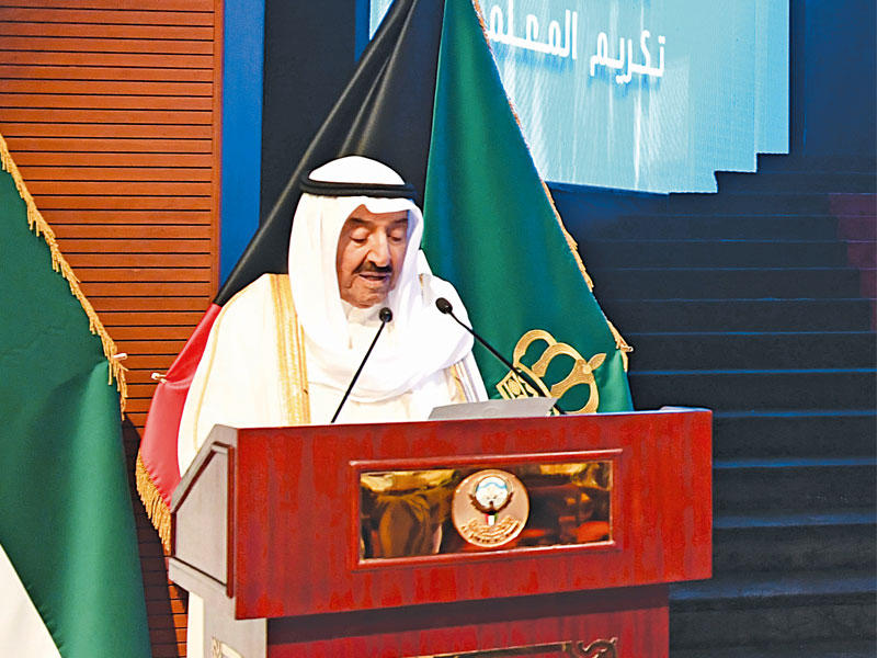 أكد سمو أمير البلاد الشيخ صباح الأحمد ثقته بأهل الميدان التربوي، وتحملهم المسؤولية الكبيرة الملقاة على عاتقهم، وبذلهم قصارى جهدهم للمضي قدما في مسيرة التعليم والنهوض بها، ومتابعة كل جديد في ميادين التطور العلمي، "لاسيما ونحن في عصر التكنولوجيا والعولمة".وعبر سموه، في كلمته خلال حفل تكريم المعلمين المتميزين العاملين في وزارة التربية، على مسرح الهيئة العامة للتعليم التطبيقي والتدريب، أمس، عن سعادته بمشاركة المحتفى بهم في اليوم العالمي للمعلم، وكونه بين أبنائه وبناته في هذا اليوم الذي يعتبر يوم المعلم الكويتي، "الذي نكن له كل احترام وتقدير واجلال، فهو المعلم الذي علم أبنائي وأحفادي وأبناءنا وبناتنا، وأفضاله علينا عظيمة لا تنسى، وستظل معنا مستمرة وتلازمنا طوال حياتنا".