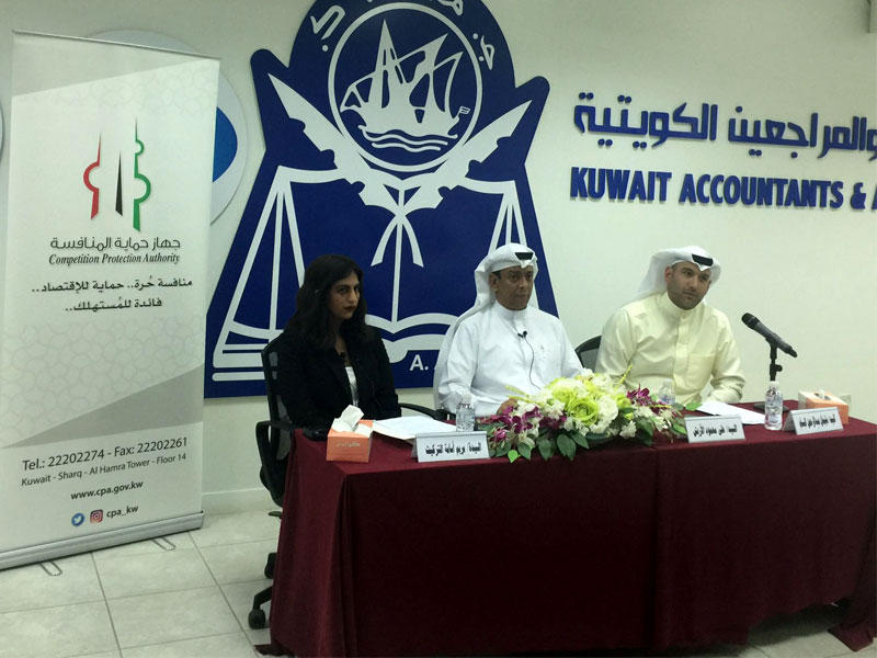 وذكر أنه يحق للمتضررين اللجوء إلى الجهاز لتقديم شكوى عند وجود ممارسات تضر بالمنافسة، إذ يتخذ الجهاز إجراءات التقصي والبحث وجمع الاستدلالات والتحقيق لاتخاذ الإجراء اللازم، كما يبادر الجهاز بإجراء الدراسات والبحوث اللازمة لتحليل أساليب التعامل المختلفة في الأسواق للكشف عن الحالات الضارة بالمنافسة والممارسات الاحتكارية، مبيناً أنه يتم استخدام الضبطية القضائية في حال وجود شبهة جرائم، فلموظفي الضبطية القضائية أن يطلعوا على الدفاتر والمعلومات من الجهات الحكومية وغير الحكومية.ولفت الأربش إلى أن موظفي الجهاز يباشرون التدريب مع البنك الدولي الذي يشرف على التدريب الاقتصادي من ناحية دراسة الأسواق المعنية وكيفية تحديد نسب السيطرة وآلية الكشف والتحليل بشأن المجاميع الاحتكارية والسلوكيات، التي يكون هدفها الإضرار بالمنافس والمستهلك وأيضاً التدريب القانوني، الذي يشمل كيفية تطبيق وتفعيل قانون حماية المنافسة. من جانبها، قالت محاسب أول في جهاز حماية المنافسة مريم التركيت، إن هناك فرقاً كبيراً بين دور كل من جهاز حماية المنافسة وإدارة حماية المستهلك ويجب التفريق بينهما، إذ إن الجهاز يحمي المنافسة ويمنع الاحتكار في الأنشطة، أما حماية المستهلك فدورها الأسعار والتحقيق في شكاوى المستهلك حول السلع وغيرها من الأمور مشيرة إلى أنه لا يوجد تعارض بين الاثنين فلكل دوره الذي يقوم به.وحول الاستحواذ والاندماج أوضحت التركيت أن أي عملية اندماج أو استحواذ بين الشركات، لابد أن يتم إخطار الجهاز بها، إذ يتولى دراستها جيداً، ثم يتخذ قراراً بالموافقة عليها أو رفضها.وعن التضمين، ذكرت أن التضمين، إذا لم يؤثر على المنافسة فلا ضرر منه ولا يمنعه الجهاز بل على العكس، خصوصاً أن الأجانب لا يحق لهم فتح أنشطة تجارية بأسمائهم، بالتالي لابد من التضمين شريطة ألا يكون فيه احتكار لنشاط معين.وذكرت أن الجهاز يتدخل في حال وجد أن هناك اتفاقاً بين شركات أو جهات تحاول القيام بممارسات ضارة أو احتكار قطاع معين بنسبة تزيد على 35 في المئة، مبينة أن تعمد الضرر بالمنافسين من خلال عقود حصرية يجرمه قانون المنافسة.وقالت إن من أهم ما جاء في القانون لضمان تطبيق تكافؤ الفرص وخلق بيئة تنافسية في السوق الكويتي هو منع ممارسات تهدف إلى الضرر بالمنافس أو المستهلك، ومن هذه الممارسات تغيير أسعار السلع أو الخدمات أو تثبيتها سواء بصورة معاملات وهمية أو فعلية من بعض المنافسين، كذلك التحكم بتدفق كمية من المنتجات إلى الأسواق سواء دخولها أو خروجها، فضلاً عن افتعال وفرة مفاجئة للمنتجات تؤدي إلى تداولها بسعر غير حقيقي يؤثر على المنافسين.وأوضحت أنه كأصل عام يحقق الجهاز مع جميع الكيانات الاقتصادية والأشخاص والشركات على مختلف طريق تكوينها باستثناء بعض الجهات التي حظرت المادة 6 من قانون المنافسة التحقيق معها، وهي الشركات والمرافق، التي تديرها أو تملكها الدولة ومنها النفط، والمشروعات وأوجه النشاط التي ينظمها قانون خاص مثل شركات الاتصالات، كذلك الأنشطة التي تستهدف تسهيل النشاط الاقتصادي كالتعاون بين الشركات بوضع المعايير القياسية وتبادل الإحصائيات، إضافة إلى أنشطة البحوث والتطوير (مثال المركز العلمي، ومعهد الأبحاث).
