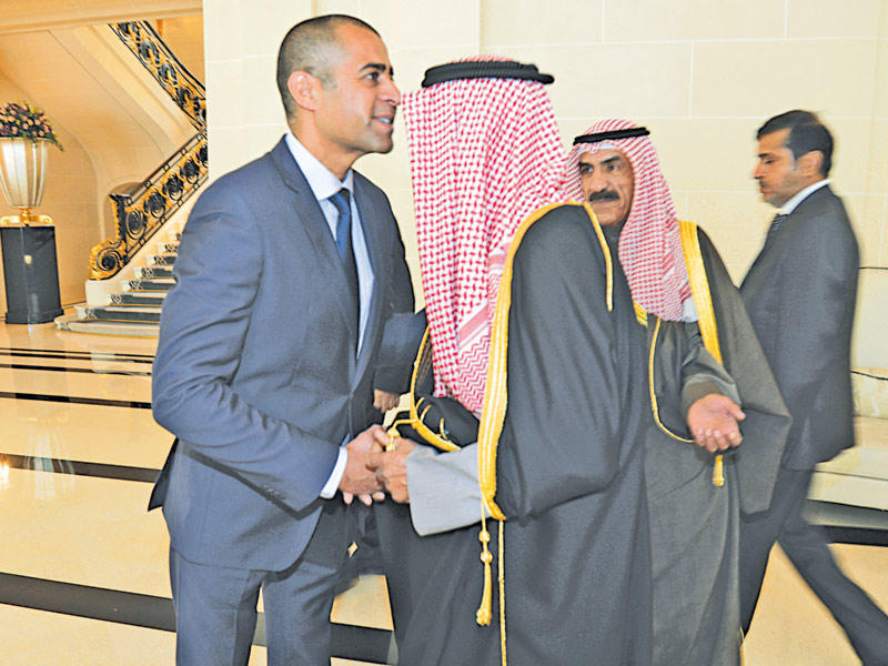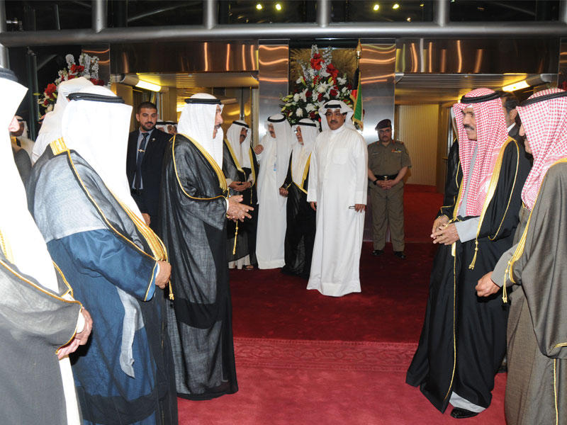 ولي العهد لدى وصوله ويبدو مشعل الأحمد أمس