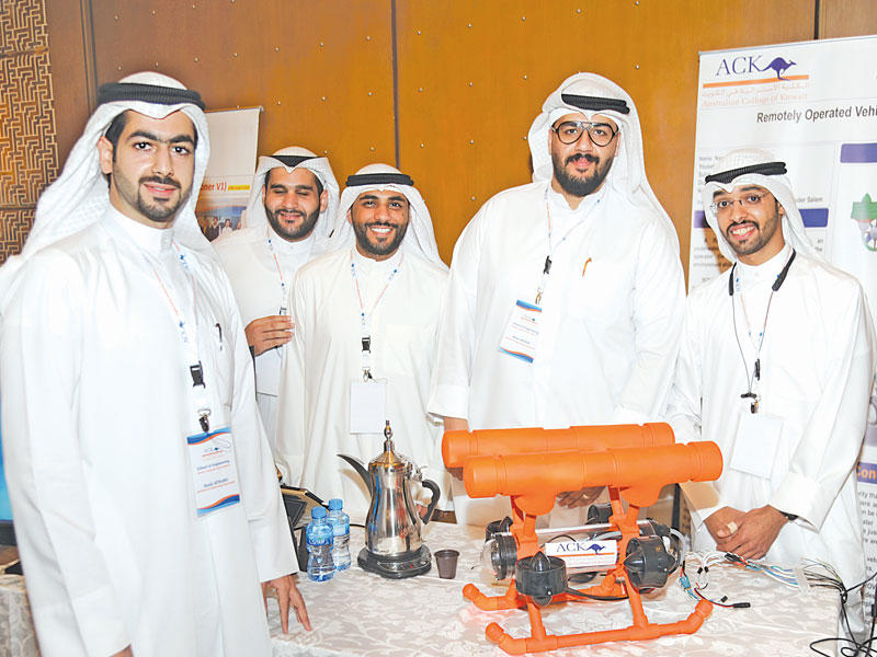 نظمت الكلية الأسترالية في الكويت المعرض الثامن لمشاريع التخرج، بمشاركة 57 مشروعاً لـ217 طالباً وطالبة في مختلف التخصصات الهندسية الأربعة، صباح أمس، بقاعة سلوى الصباح في المارينا مول. وأشاد رئيس جمعية المهندسين الكويتية م. فيصل العتل، بالمشاريع المشاركة، لافتا الى انها مفيدة لمستقبل الكويت، ومؤكدا دعمه ودعم الجمعية الكامل "للطاقات الشبابية والمشاريع المتميزة التي شاركوا بها، والتي تسهم في بناء مستقبل الوطن، فضلا عن تميزها".