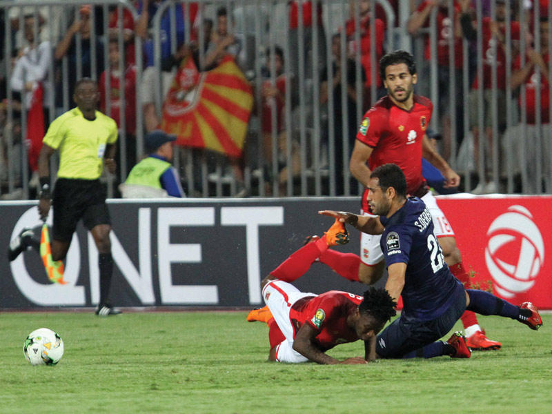 افتتح الأهلي المصري مشواره في المجموعة الأولى لدوري المجموعات بأبطال إفريقيا بالتعادل أمام ضيفه الترجي التونسي بدون أهداف، في المباراة التي جمعت بينهما مساء أمس الأول على استاد برج العرب بالإسكندرية.ولم تستغرق مرحلة جس النبض طويلا، بعد أن ضغط الأهلي عن طريق لاعبه وليد سليمان الذي مرر كرة إلى الجنوب إفريقي باكا بالدقيقة الرابعة من ناحية اليمين لينفرد على أثرها، لكن باكا سددها بغرابة فوق العارضة.وأشهر الحكم السنغالي بطاقة صفراء لوليد سليمان في الدقيقة 12 للخشونة، قبل أن ينال كوليبالي، لاعب الترجي بطاقة صفراء للخشونة مع عمرو السولية، الذي أصيب، وحاول بعدها التحامل على نفسه واستكمال اللقاء لكن دون جدوى، فاضطر الجهاز الفني للأحمر إلى إجراء تغيير بنزول محمد هاني بدلا منه، مع تغيير مركز أحمد فتحي للعب في خط الوسط بجوار حسام عاشور، وسيطر على بقية مجريات الشوط الأول لكن دون جدوى، بعدما ظهر واضحا افتقاد الأحمر «اللمسة الأخيرة» إلى أن انتهى الشوط بالتعادل السلبي.