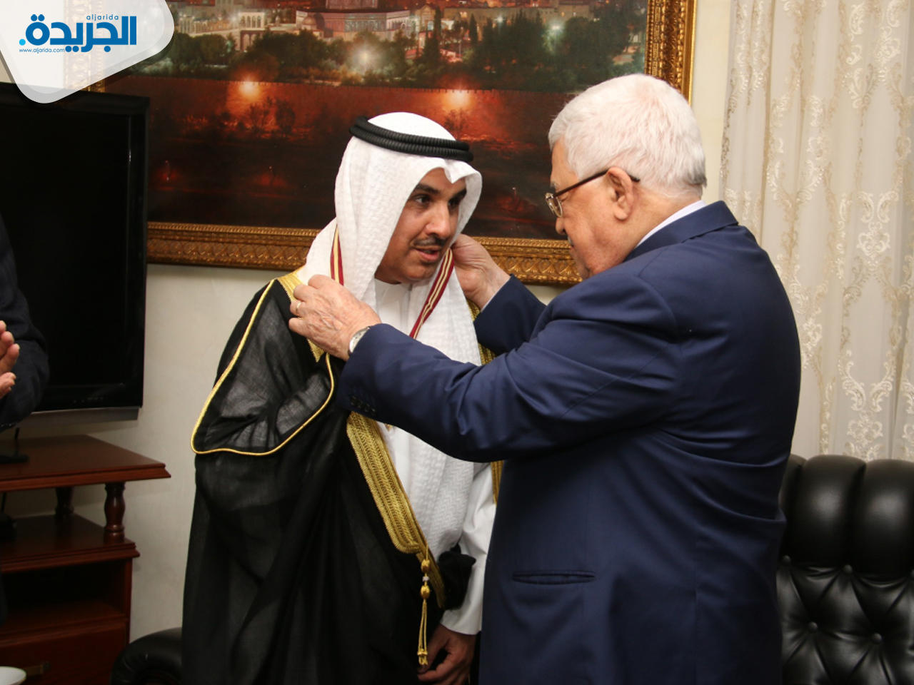 واستذكر عباس الدور الكويتي الداعم للقضية منذ بداية الثورة وانطلاق منظمة التحرير الفلسطينية لافتا إلى أن الشعب الفلسطيني "لن ينسى هذا الدعم من أبناء الكويت". من جانبه أكد السفير الهاجري ل(كونا) حرصه على دعم القضية الفلسطينية لا سيما من موقعه في القارة الافريقية موضحا أن ذلك يأتي ترجمة لتوجيهات سمو أمير البلاد الشيخ صباح الأحمد الجابر الصباح بدعم الشعب الفلسطيني.وقال إن الكويت دأبت دائما على دعم القضية الفلسطينية من مختلف المحافل الدولية سواء من خلال عضويتها في مجلس الامن أو عبر البرلمان الدولي.وأضاف "لقد تشرفت اليوم بلقاء الرئيس عباس حيث نقلت إليه تحيات سمو أمير البلاد وحكومة الكويت وشعبها قبل أن يقلدني وسام (نجمة القدس) تقديرا لدورنا في خدمة القضية الفلسطينية بالقارة الافريقية".وذكر أن تقليده الوسام "شرف عظيم أهديه إلى نائب رئيس مجلس الوزراء وزير الخارجية الشيخ صباح الخالد الحمد الصباح وإلى أسرة وزارة الخارجية كافة" مؤكدا التزامه بمواصلة دعم القضية الفلسطينية ونصرتها.بدوره أشاد السفير الفلسطيني لدى اثيوبيا ومندوبها الدائم لدى الاتحاد الافريقي الدكتور نصري أبو جيش في تصريح مماثل بدعم الكويت قيادة وحكومة وشعبا للقضية الفلسطينية ووقوفها إلى جانب الشعب الفلسطيني على الدوام.وأعرب أبو جيش عن التقدير والشكر لجهود زميله السفير الهاجري في نصرة القضية من موقعه في القارة الافريقية مثمنا المواقف الكويتية الرسمية والشعبية "المشرفة" تجاه القضية.وحضر حفل التقليد من الجانب الكويتي السفيران الهاجري والدعيج والمستشار بالسفارة الكويتية لدى الأردن عادل الزعبي ومن الجانب الفلسطيني المستشار الدبلوماسي للرئيس عباس الدكتور مجدي الخالدي.